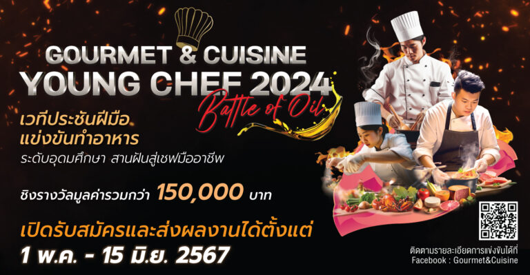 การแข่งขันทำอาหารระดับอุดมศึกษา “Gourmet & Cuisine Young Chef 2024” จัดโดย นิตยสาร Gourmet & Cuisine เพื่อเป็นเวทีเปิดโอกาสให้นิสิต นักศึกษา เยาวชน ผู้มีใจรักในการทำอาหารได้มีสนามพิสูจน์ฝีมือแสดงความสามารถด้านการประกอบอาหาร และต่อยอดสู่การเป็นเชฟมืออาชีพมาประดับวงการธุรกิจอาหารของไทยในอนาคตได้อย่างมีคุณภาพ พร้อมชิงรางวัลและของสมนาคุณ ถ้วยรางวัลเกียรติยศ ประกาศนียบัตร และรางวัลอื่นๆ อีกมากมาย มูลค่ารวมกว่า 900,000 บาท
