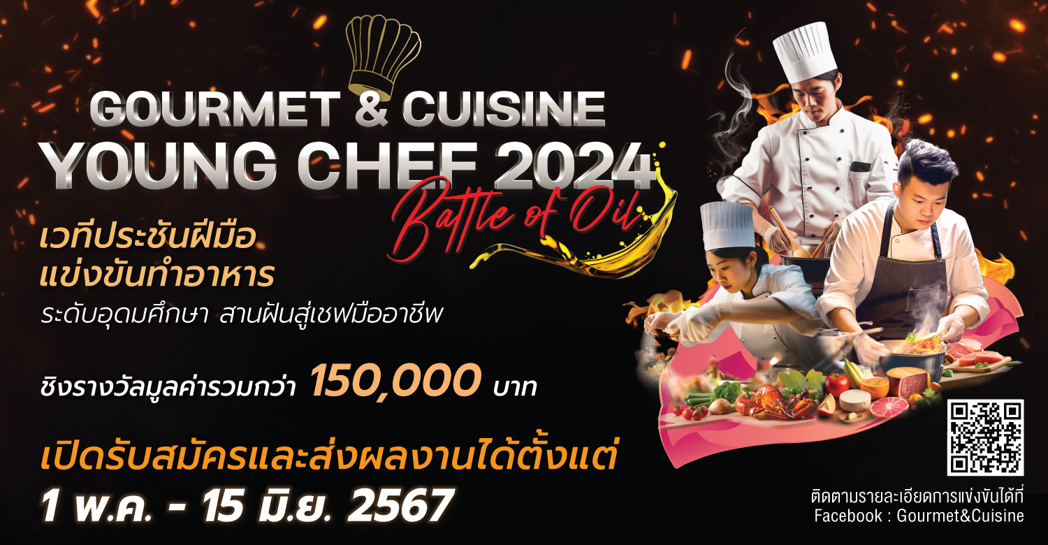 ใกล้เข้ามาแล้วกับเวทีการแข่งขันทำอาหารระดับอุดมศึกษา “Gourmet & Cuisine Young Chef 2024”สานฝันสู่เชฟมืออาชีพ จัดโดย นิตยสาร Gourmet & Cuisine ร่วมกับ โรงเรียนสอนประกอบอาหาร เลอโนท ประเทศไทย (Lenôtre Culinary Arts School Thailand) ขอเชิญนิสิต นักศึกษา ผู้ที่มีใจรักในการทำอาหารร่วมสมัครเข้าแข่งขัน เพื่อเฟ้นหาผู้มีทักษะการประกอบอาหารยอดเยี่ยม ชิงรางวัลมูลค่ารวมกว่า150,000 บาท พร้อมถ้วยรางวัลเกียรติยศ ประกาศนียบัตร และอื่นๆ อีกมากมาย เริ่มเปิดรับสมัครตั้งแต่วันที่ 1 พฤษภาคม-15 มิถุนายน 2567 ติดตามรายละเอียดได้ที่ Facebook : Gourmet & Cuisine Young Chef และ Gourmet & Cuisine