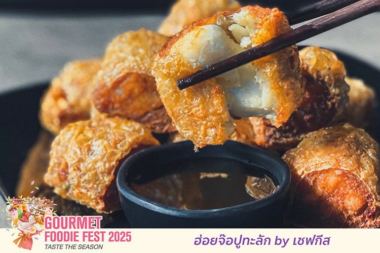 • ฮ่อยจ๊อปูทะลัก by เชฟกีส – ฮ่อยจ๊อก้อนโต ไส้ปูแน่น พร้อมแฮ่กึ๊นกุ้งเน้นๆ ห่อด้วยฟองเต้าหู้บางกรอบ