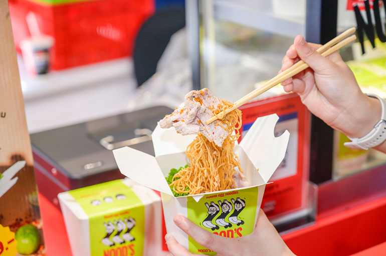 • Nood’s บะหมี่หมูสูตรเข้มข้นของ อาเล็ก ธีรเดช เสิร์ฟในกล่องพกสะดวก รสชาติกกลมกล่อม พร้อมหมูบะช่อ หมูชิ้น หมูสับ และหมูกระจกกรุบๆ เพิ่มความเคี้ยวมันกำลังดี