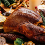 โต๊ะรับประทานอาหารตกแต่งด้วยผ้าปูโต๊ะบุผ้าสีขาว เชิงเทียนทรงเข้าชุดที่มีความสูง 2 ระดับ แจกันสีขาวทรงโค้งมาพร้อมกับดอกไม้แห่งเดือนธันวาคม ภาชนะใส่อาหารแบบใหม่สีขาวสะอาดตา แก้วน้ำลายหิมะและเหยือกที่เข้าชุดกันช่วยเติมเต็มบรรยากาศแห่งการเฉลิมฉลองของเทศกาลคริสต์มาส รวมถึงจานเสิร์ฟและขวดโหลแก้วที่มีรูปร่างเป็นต้นคริสต์มาสและลูกบอลสีขาวขุ่นราวกับเคลือบหิมะเอาไว้
