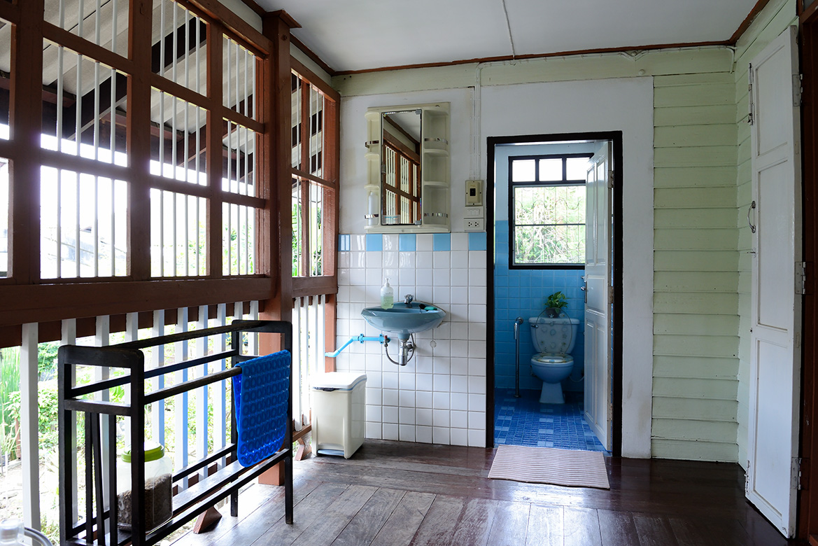 2. จากพื้นที่เดิมซึ่งเป็นระเบียงหน้าบ้านถูกต่อเติมให้เป็นห้องน้ำ เพื่อสะดวกในการใช้งาน แล้วเสริมด้วยลูกกรงด้านบนให้ดูเป็นสัดส่วนมากขึ้น ทั้งยังช่วยกันขโมยได้อีกด้วย