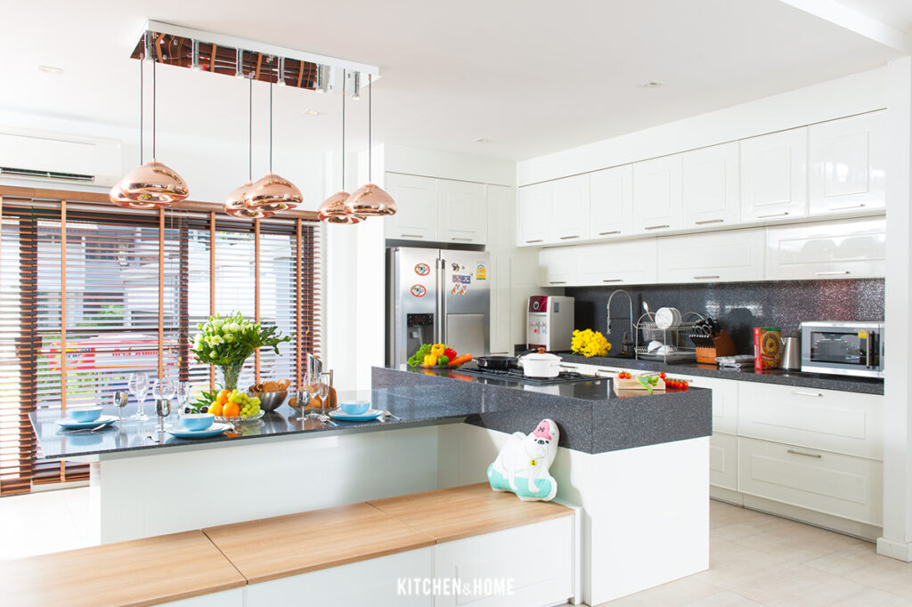 หากครัวมีหน้าต่าง ควรเปิดรับแสงธรรมชาติเต็มที่ หรือเพิ่มไฟ LED แบบซ่อนใต้ตู้และไฟเพดานโทนขาว เพื่อให้ครัวดูสว่างและไม่อึดอัด