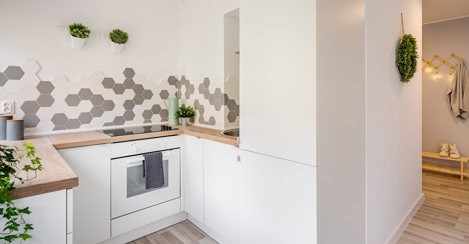 การใช้สีโทนสว่าง เช่น ขาว ครีม หรือเทาอ่อน ช่วยสะท้อนแสง ทำให้ครัวดูโปร่งและกว้างขึ้นทันตา สามารถเติมลูกเล่นด้วยวัสดุไม้หรือโลหะเล็กน้อย เพื่อไม่ให้ดูเรียบจนเกินไป