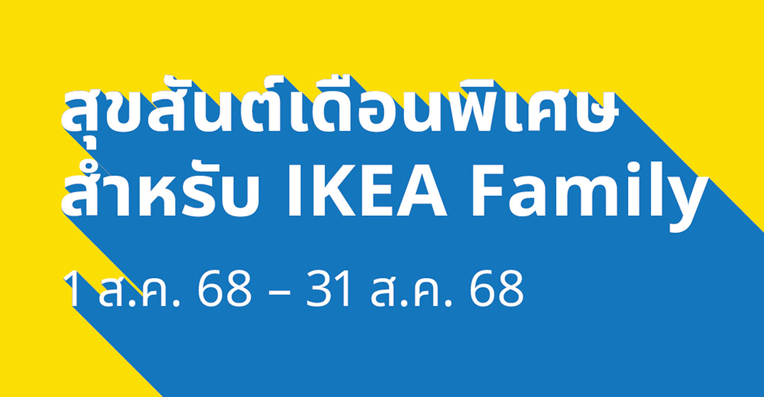 อิเกียขอเชิญร่วมฉลองเดือนสุขสันต์สุดพิเศษกับช่วงเวลาความสนุกสุดคุ้มที่สมาชิก IKEA Family ทุกครอบครัว รอคอย กับ IKEA Family Month ตั้งแต่วันที่ 1-31 สิงหาคม 2568 กับกิจกรรมดับเบิ้ลความสุข ปลดล็อคทุกความคุ้มที่สโตร์อิเกียทุกสาขาทั่วประเทศ มาเป็นส่วนหนึ่งในครอบครัวอิเกียและไม่พลาดทุกการช้อปปิ้งและกิจกรรมสุดพิเศษมากมาย โดยสามารถสมัครสมาชิก IKEA Family ได้ที่ทุกสโตร์อิเกียหรือผ่านช่องทางออนไลน์ IKEA.co.th/family