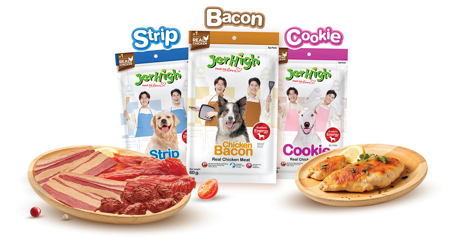 JerHigh (เจอร์ไฮ) แบรนด์ขนมสุนัขอันดับ 1 ของประเทศไทยที่เข้าใจหัวใจคนรักสัตว์เลี้ยงมากที่สุด สร้างปรากฏการณ์ใหม่อีกขั้นด้วยการเปิดตัว JerHigh Chicken Bacon, JerHigh Strip และ JerHigh Cookie ขนมที่ไม่ได้มีดีแค่รูปลักษณ์ชวนหิว มีให้เลือก 3 รูปแบบ ได้แก่ เบคอน ไก่แผ่น และคุกกี้ รสชาติอร่อยถูกใจ หอม นุ่ม เคี้ยวง่าย ฟินได้ทุกมื้อ พร้อมคุณประโยชน์ที่ดีต่อสุขภาพ ทำให้น้องสุนัขของคุณต้องหลงรัก! พิเศษไปกว่านั้น… ยังเป็นโปรเจกต์ภาคต่อของการร่วมมือสุดอบอุ่นกับสองหนุ่มผู้รักสัตว์เลี้ยง อย่าง ‘พี่จองและคัลแลน’ ผู้ส่งมอบความรัก ความผูกพัน และความใส่ใจทุกขั้นนตอน ผ่านขนมทุกชิ้นของ JerHigh ด้วยแนวคิด ‘ขนมสุนัขที่ดูเหมือนขนมคน… เพราะเขาก็คือคนสำคัญของเรา’