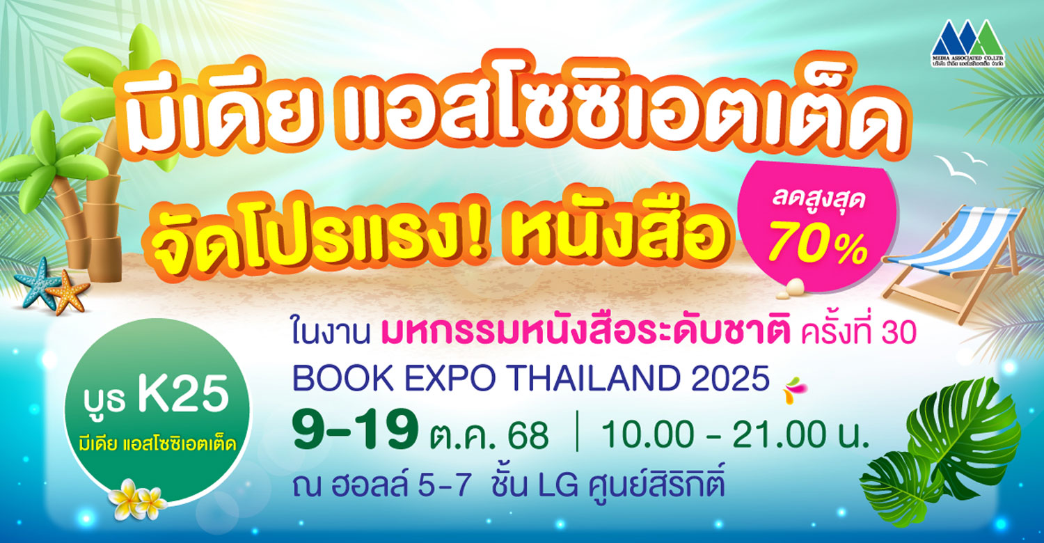 ลดแรง คุ้มจริงแบบนี้ พลาดไม่ได้แล้ว พบกันที่บูธ K25 มีเดีย แอสโซซิเอตเต็ด ในงานมหกรรมหนังสือระดับชาติ ครั้งที่ 30 BOOK EXPO THAILAND 2025 ระหว่างวันที่ 9-19 ตุลาคม 2568 เวลา 10.00-21.00 น ณ ฮอลล์ 5-7 ชั้น LG ศูนย์การประชุมแห่งชาติสิริกิติ์