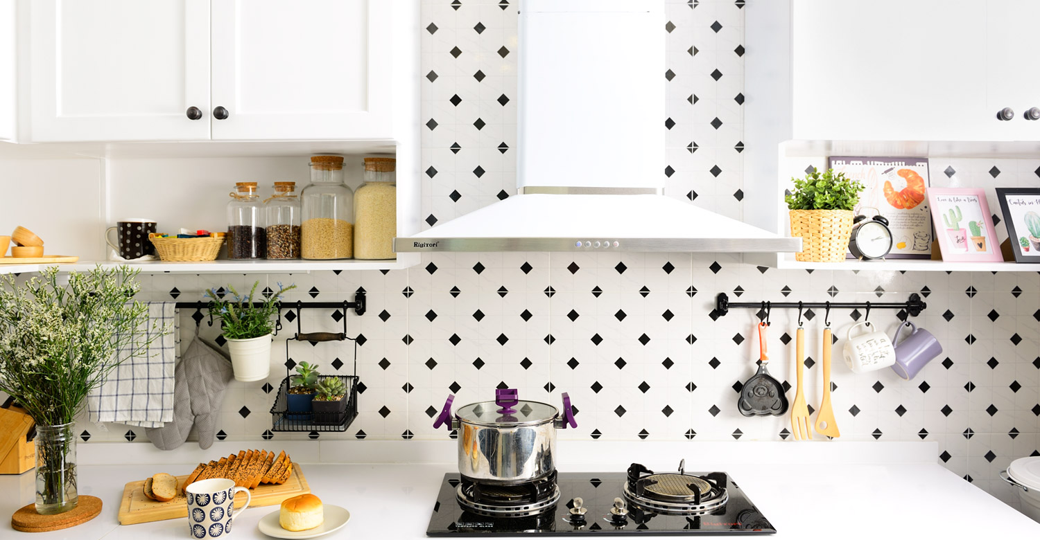 ทุกวันนี้มีกระเบื้องให้เราเลือกหลากสีหลายดีไซน์ นอกจากเรื่องของความสวยงามแล้วการเลือกใช้กระเบื้องติดผนังในครัวยังช่วยให้เราสามารถเช็ดทำความสะอาดคราบสกปรกต่างๆ ได้ง่ายอีกด้วย