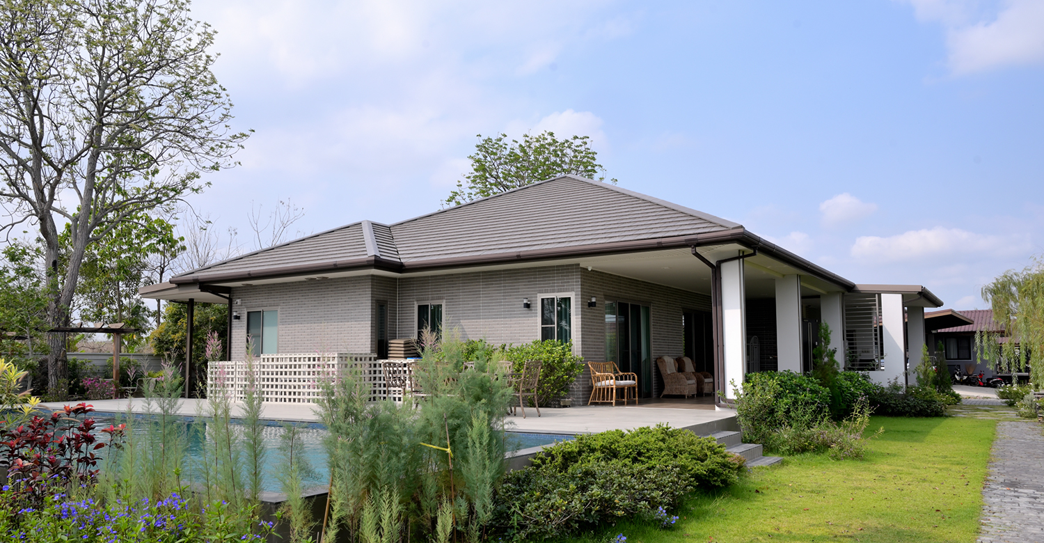 โจทย์คือต้องเป็นบ้านสำหรับรองรับการใช้งานยามแก่เฒ่า “ด้วยอายุที่มากขึ้นบวกกับเราไม่มีลูกจึงคิดว่าบ้านชั้นเดียวน่าจะตอบโจทย์ลงตัว เราเคยมีบ้านมาแล้วหลังหนึ่ง รู้ว่าไลฟ์สไตล์และการใช้ชีวิตประจำวันของเราเป็นอย่างไร ค่อนข้างชัดเจนว่าฟาซิลิตี (Facility) ภายในบ้านอยากให้มีอะไรบ้าง เน้นความเรียบง่าย มีฟังก์ชันที่สามารถใช้งานได้จริง และจากประสบการณ์ที่เราเคยต่อเติมบ้านกับทำร้านมาก่อนไม่อยากต้องมาคอยดูผู้รับเหมาตลอดเวลา ครั้งนี้จึงตัดสินใจเลือกบ้านของ SCG Heim เราเคยไปดูบ้านตัวอย่างของเอสซีจีเมื่อประมาณ 10 ปีที่แล้ว พอไปดูอีกครั้ง เห็นแล้วรู้สึกชอบที่บ้านไม่ต้องทาสี ทั้งยังมีอะไรใหม่ๆ ที่พัฒนาขึ้นเยอะมากจากเมื่อก่อน”