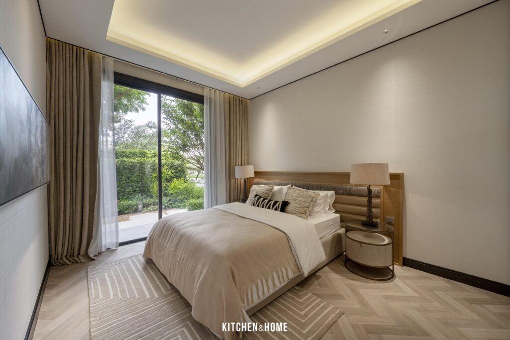 ไม่เพียงเท่านั้น ที่นี่ยังให้ความสำคัญกับการออกแบบตามหลัก Universal Design ชั้น 1 ของบ้านไม่มีพื้นต่างระดับ ไม่มีขอบสะดุด เป็น Wheelchair Friendly รองรับการใช้รถเข็น และมีห้องสำหรับผู้สูงอายุที่เลือกใช้วัสดุปูพื้น Shock Absorption Floor นำเข้าจากฝรั่งเศส ให้สัมผัสนุ่มนวล ซับแรงกระแทก ลดความรุนแรงจากการหกล้ม เหมาะสำหรับผู้สูงอายุและเด็กเล็ก พื้นที่ภายในห้องออกแบบขนาดใหญ่พิเศษรองรับผู้ดูแลใกล้ชิดให้มีความคล่องตัว อยู่สบาย ทั้งยังสามารถเดินออกสู่สวนส่วนตัว เพิ่มบรรยากาศและเปิดมุมมองให้พื้นที่สีเขียว ปลอดภัยด้วยการติดตั้งไฟฟ้าฉุกเฉินในจุดเสี่ยง ส่องสว่างเมื่อระบบไฟฟ้าดับ