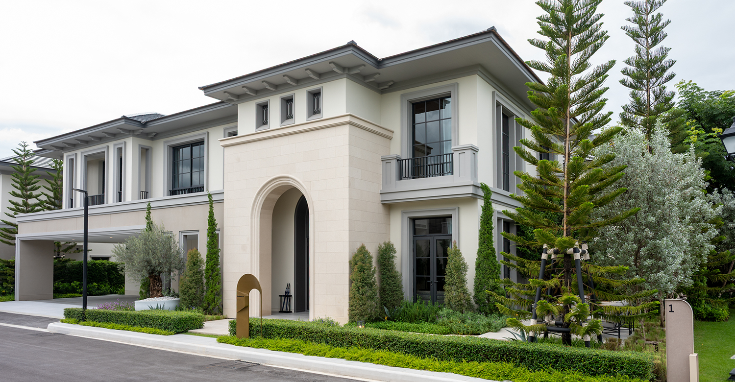 ในส่วนของดีไซน์บ้าน โดดเด่นด้วยสถาปัตยกรรมที่มีเสน่ห์เป็นเอกลักษณ์ในสไตล์ Mediterranean Revival สร้างประสบการณ์ให้ผู้อยู่อาศัยสัมผัสได้ถึงกลิ่นอายของศิลปะและวัฒนธรรมแห่งท้องทะเลเมดิเตอร์เรเนียน เริ่มตั้งแต่ Welcoming Archways ซุ้มโค้งที่มอบความรู้สึกอบอุ่นตั้งแต่ก้าวแรกที่เข้าสู่ตัวบ้าน ช่วยเพิ่มมิติและแฝงไปด้วยความคลาสสิกเข้ากับสไตล์ของบ้าน นอกจากนี้ยังมีรายละเอียดซึ่งถูกออกแบบอย่างใส่ใจทุกตารางนิ้ว อย่าง Cornice & Rafter ยกระดับความงามของบ้านให้น่าสนใจด้วยดีไซน์บัวและค้ำยันที่มีดีไซน์ประณีตพิถีพิถัน
