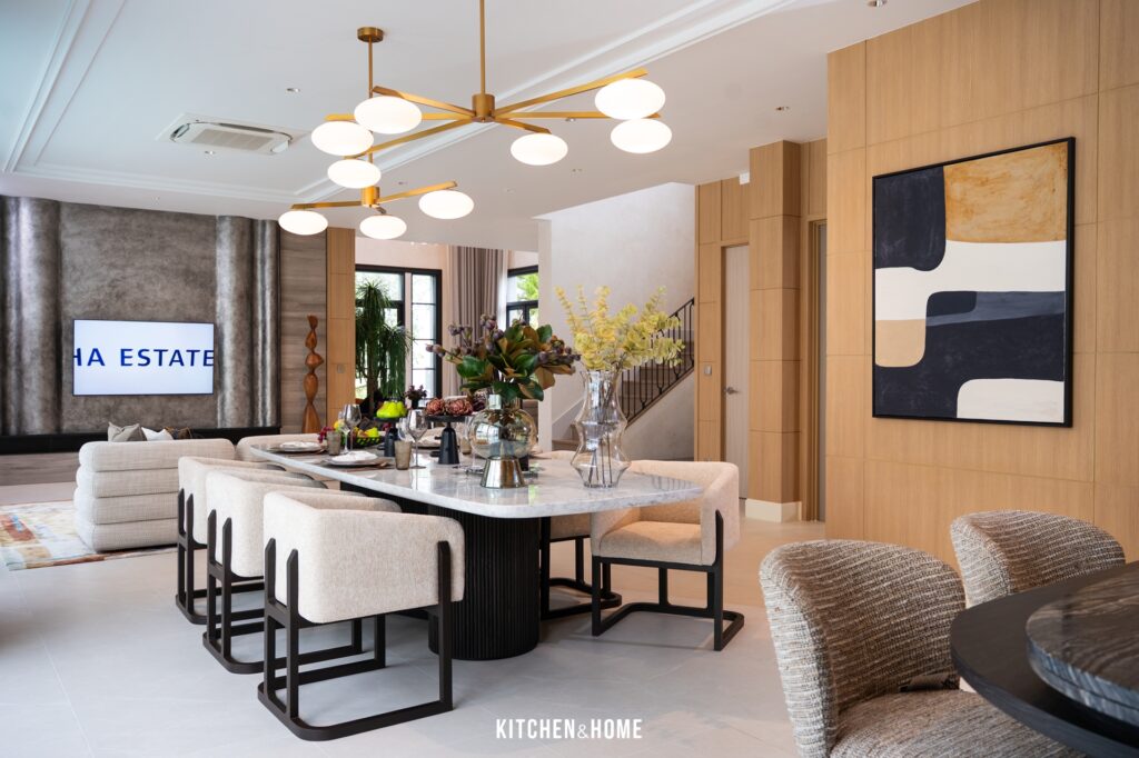 ถัดไปในส่วนของการตกแต่งภายในของบ้านตัวอย่างทั้ง 3 หลัง ยังได้ผู้นำด้านเฟอร์นิเจอร์และของตกแต่งบ้านระดับพรีเมียมอย่าง Quattro Design มาเลือกสรรเฟอร์นิเจอร์จาก Eichholtz แบรนด์ลักซ์ชัวรีสัญชาติเนเธอร์แลนด์ที่โดดเด่นด้านดีไซน์อันประณีตและวัสดุคุณภาพ นำเข้ามาตกแต่งเสริมบรรยากาศของบ้านให้สวยงามทั้งการมองเห็น ผิวสัมผัส และรองรับการใช้งานได้จริง