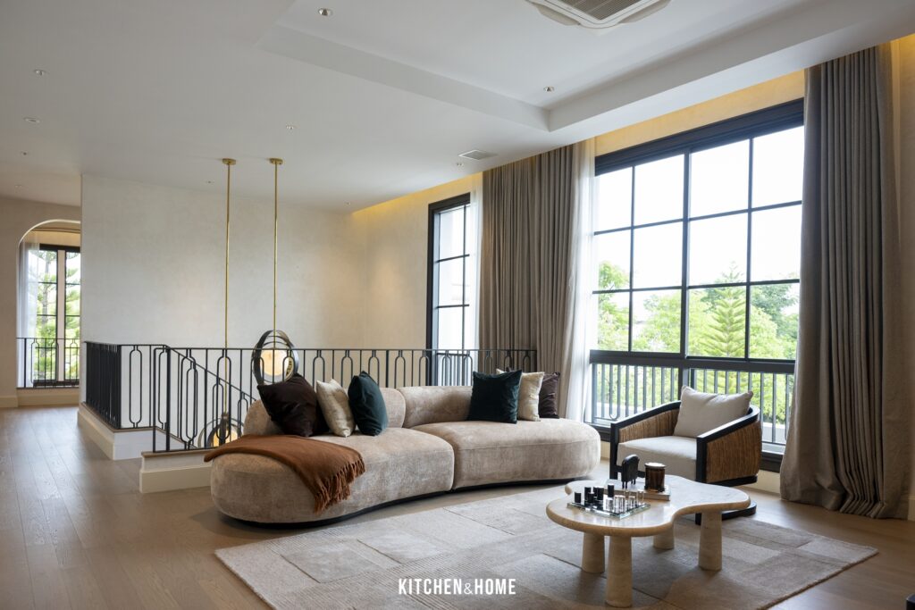 ทั้งยังสร้างความรู้สึกเชื่อมโยงให้กับพื้นที่ภายในและภายนอกด้วย Seamless Indoor-Outdoor Harmony ผ่านช่องแสงขนาดใหญ่ สามารถเปิดรับแสงธรรมชาติได้อย่างเต็มที่ ทำให้บ้านดูโปร่ง โล่ง และน่าอยู่ มาพร้อมกับเส้นโค้ง Soft Curves & Flowing Lines ช่วยสร้างความนุ่มนวล ลื่นไหล ให้ความรู้สึกมีชีวิตชีวาในทุกมุมมอง ทั้งหมดนี้ยังถูกเติมเต็มด้วยการเลือกใช้ Rustic Materials & Earthy Tones วัสดุธรรมชาติและสีเอิร์ธโทน ให้ความรู้สึกอบอุ่น เรียบง่าย ผ่อนคลาย ขณะเดียวกันก็แฝงไปด้วยความหรูหรา