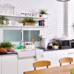 ลูกเล่นน่าสนใจสำหรับครัวนี้อยู่ที่การนำวัสดุกรุทอปไม้จริงเข้ามาเพิ่มความอบอุ่นให้กับครัวสีขาวสไตล์โมเดิร์น ทำให้ดีไซน์ครัวดูไม่น่าเบื่อเกินไป รวมถึงการเพิ่มสเต็ปเหนือเคาน์เตอร์ทำอาหารให้มีลักษณะเป็นบาร์เล็กๆ