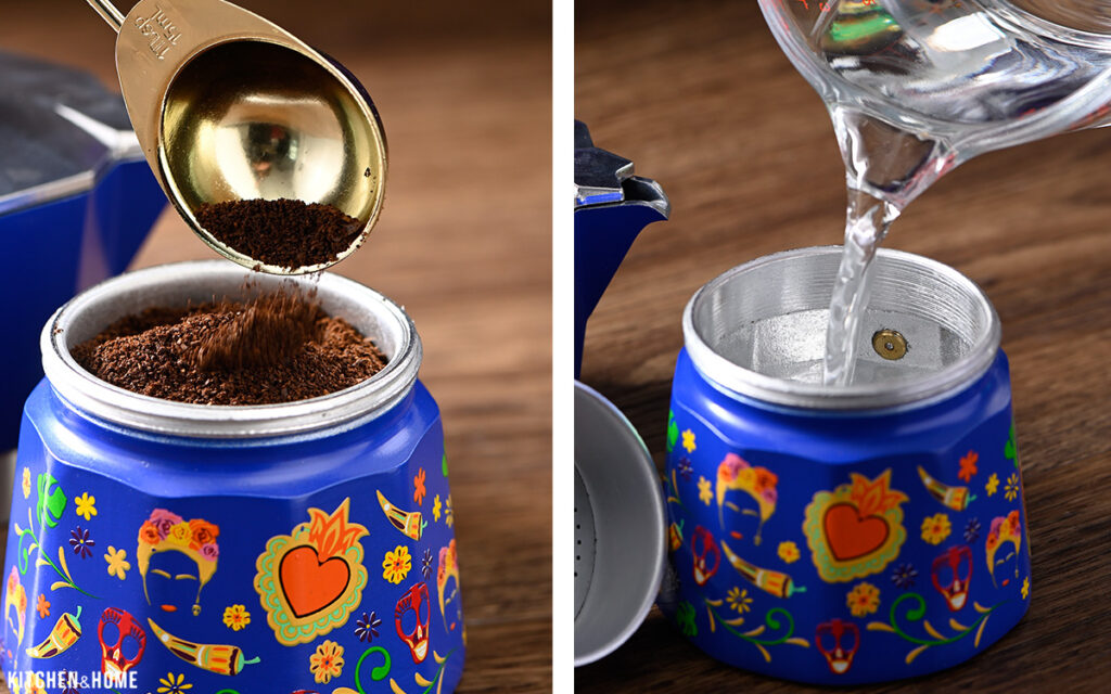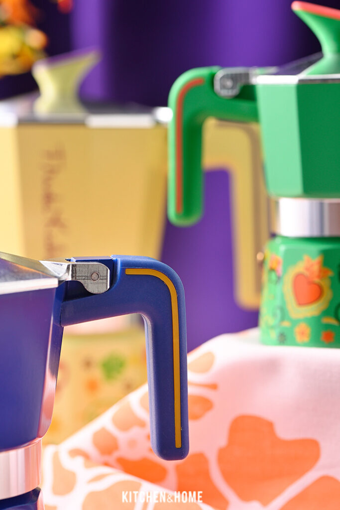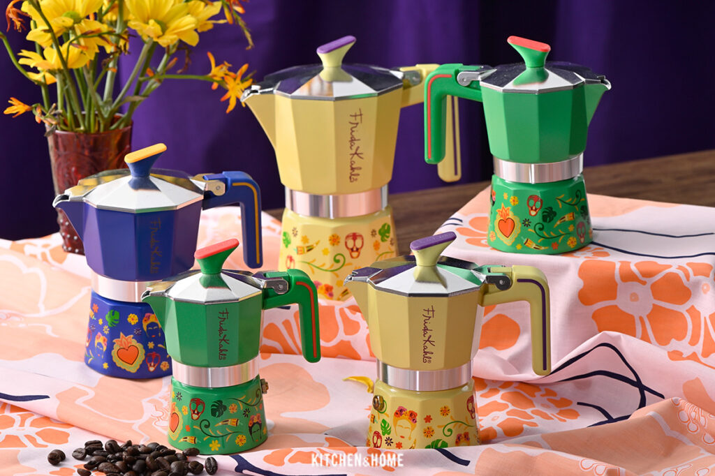 Pedrini Mocha Pot รุ่น Frida Kahlo ดีไซน์สดใส ลายศิลปินหญิงในตำนาน สื่อถึงความเป็นศิลปะและความละเมียดละไม หม้อต้มกาแฟมีหลายขนาด ประกอบด้วย 1, 2, 3 และ 6 ถ้วย พร้อมสีสันหลากหลาย