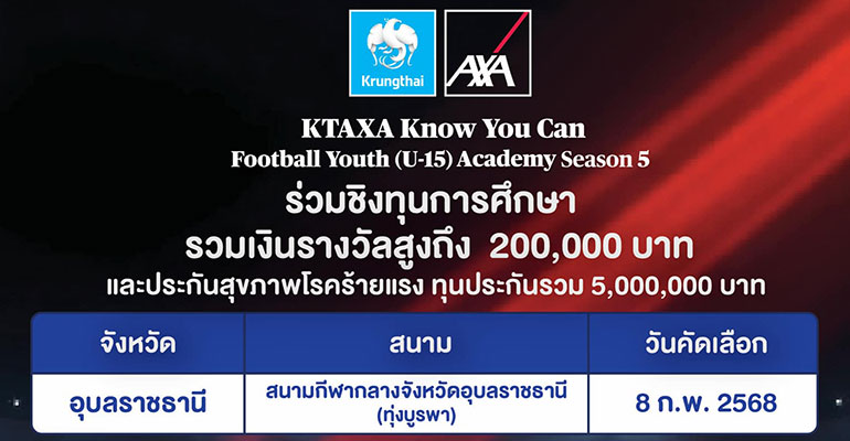 บมจ.กรุงไทย-แอกซ่า ประกันชีวิต  เปิดสนามที่ 2  ของภูมิภาคอีสาน เพื่อคัดเลือกเยาวชนเข้าร่วมโครงการ KTAXA Know You Can Football Youth (U-15) Academy Season 5 โดยเปิดโอกาสให้แก่เยาวชนอายุระหว่าง 13-15 ปี ร่วมฝึกทักษะฟุตบอลตามมาตรฐานสากลจากโค้ชระดับ AFC – A – License