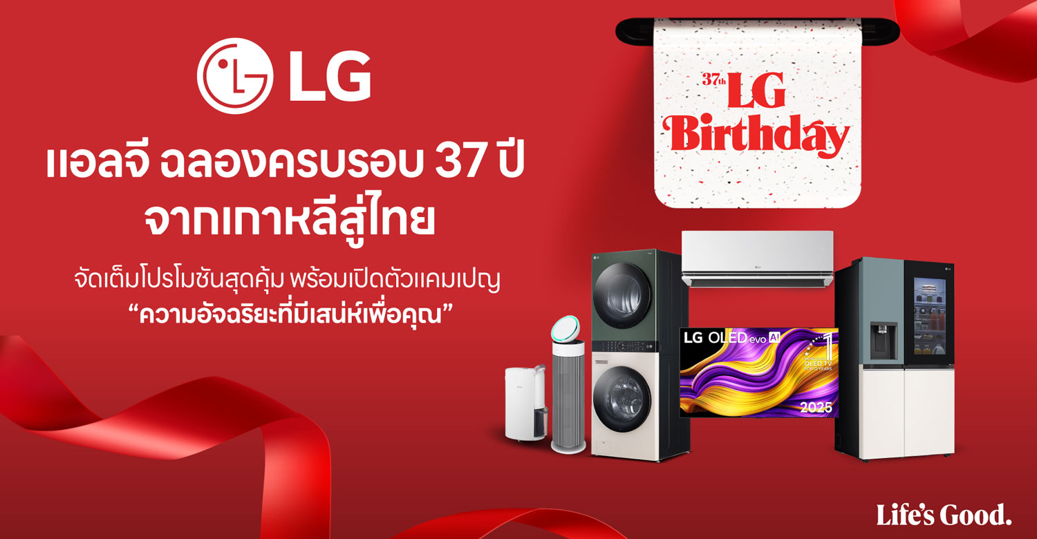 บริษัท แอลจี อีเลคทรอนิคส์ (ประเทศไทย) จำกัด หรือ แอลจี (LG) ฉลองครบรอบ 37 ปีแห่งการดำเนินธุรกิจในประเทศไทยอย่างยิ่งใหญ่ ด้วยการเปิดตัวแคมเปญพิเศษ “ความอัจฉริยะที่มีเสน่ห์เพื่อคุณ – Affectionate Intelligence for You” เพื่อแสดงความขอบคุณอย่างสุดซึ้งต่อผู้บริโภคและพันธมิตรคนสำคัญที่ให้การสนับสนุนแบรนด์แอลจีมาโดยตลอด พร้อมตอกย้ำจุดยืนในฐานะผู้นำด้านเทคโนโลยีและโซลูชันเครื่องใช้ไฟฟ้าระดับโลก ที่เข้าใจและผูกพันกับวิถีชีวิตของคนไทยอย่างลึกซึ้ง