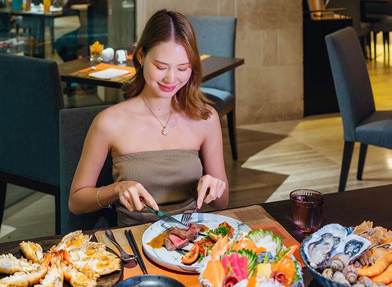 - สำหรับผู้ที่หลงใหลในรสชาติและความอร่อย พลาดไม่ได้กับบุฟเฟ่ต์ซีฟู้ดมื้อค่ำสุดพิเศษ ณ ห้องอาหารวัน รัชดา เต็มอิ่มไปกับหลากหลายเมนูอาหาร ไม่ว่าจะเป็นซีฟู้ดสดใหม่ สเต็กเนื้อสันนอกจากออสเตรเลีย ซาชิมิ และซูชิ พร้อมเมนูไฮไลต์สำหรับวันวาเลนไทน์โดยเฉพาะ อาทิ Lover’s Oyster สลัดสตรอว์เบอร์รีเฟต้า และ โรเซ่ซังเกรีย ที่จะช่วยเติมเต็มบรรยากาศวันแห่งความรักตลอดมื้ออาหารของคุณและคนพิเศษ