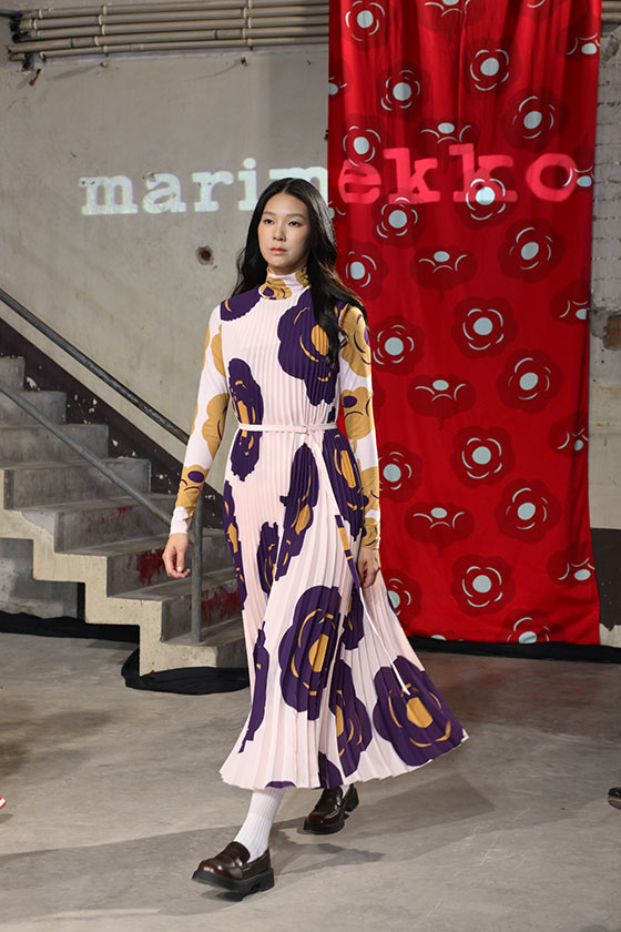 บนรันเวย์ Marimekko ถ่ายทอดซิลูเอตอันเป็นเอกลักษณ์ ไม่ว่าจะเป็น เดรสพลีตที่พลิ้วไหว เดรสและกระโปรงมินิแสนทันสมัย เสื้อถักเนื้อพรีเมียม และโค้ทที่โอบอุ้มความอบอุ่นของฤดูหนาว ทุกชิ้นถูกออกแบบให้สะท้อนทั้งความคลาสสิกและความร่วมสมัยในแบบฉบับ Marimekko