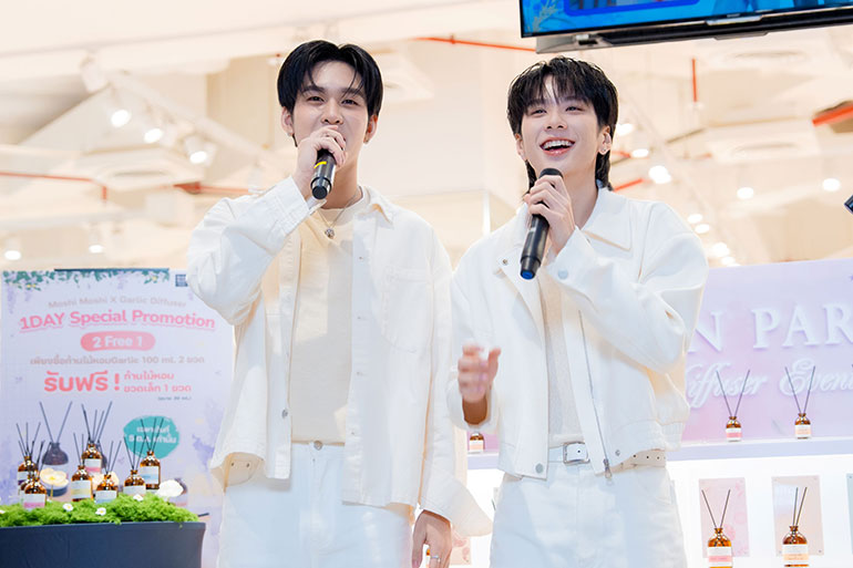 ล่าสุด บริษัทฯ ได้จัดกิจกรรมทางการตลาดครั้งพิเศษ เพื่อสร้างการรับรู้และความสนใจในผลิตภัณฑ์ Garlic Diffuser ให้เพิ่มมากขึ้น ผ่านกิจกรรม Moshi Moshi x Garlic Garden Paradise Diffuser โดยมีแขกรับเชิญสุดพิเศษอย่าง ‘คุณอู่อู๋ ธนภูมิ เศรษฐสิทธิกุล’ และ ‘คุณเซฟ วรพงษ์ วาเลาะ’ คู่จิ้นนักแสดงหน้าใหม่สุดฮอตจากซีรีส์เรื่อง ‘กี่หมื่นฟ้า’ ‘รักสุดใจนายแฟนบอย (Mr. Fanboy)’ ซึ่งเป็นที่รู้จักและได้รับความนิยมอย่างมากในหมู่แฟนคลับชาวไทยและจีน มาร่วมสร้างบรรยากาศที่อบอวลไปด้วยความหอม ความอบอุ่น และความน่ารัก เพื่อมอบรอยยิ้ม เสียงหัวเราะ และโมเมนต์แห่งความประทับใจให้กับแฟนๆ ที่เข้าร่วมงาน
