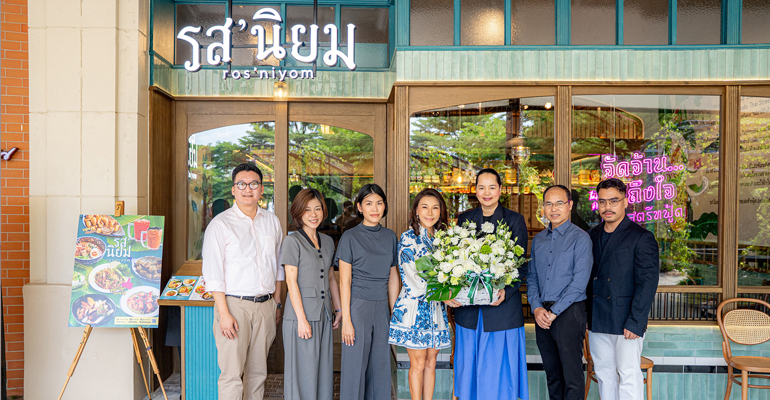 ศุภานวิต เอี่ยมสกุลรัตน์ (ที่4จากซ้าย) ประธานเจ้าหน้าที่บริหาร บริษัท เคอี กรุ๊ป มอบดอกไม้ร่วมแสดงความยินดีกับ คุณอัจฉรา บุรารักษ์ (ที่5จากซ้าย) ผู้ก่อตั้งและผู้บริหารร้านอาหารในเครือ Iberry Group เนื่องในโอกาสเปิดร้านรส’นิยม (Ros‘niyom) ร้านอาหารไทยร่วมสมัย โดยมี ธีรศักดิ์ บุตรลักษณ์ และ สองขวัญ สุนทรวิภาต ร่วมแสดงความยินดี ที่เดอะคริสตัล เอกมัย-รามอินทรา เมื่อวันก่อนที่ผ่านมา