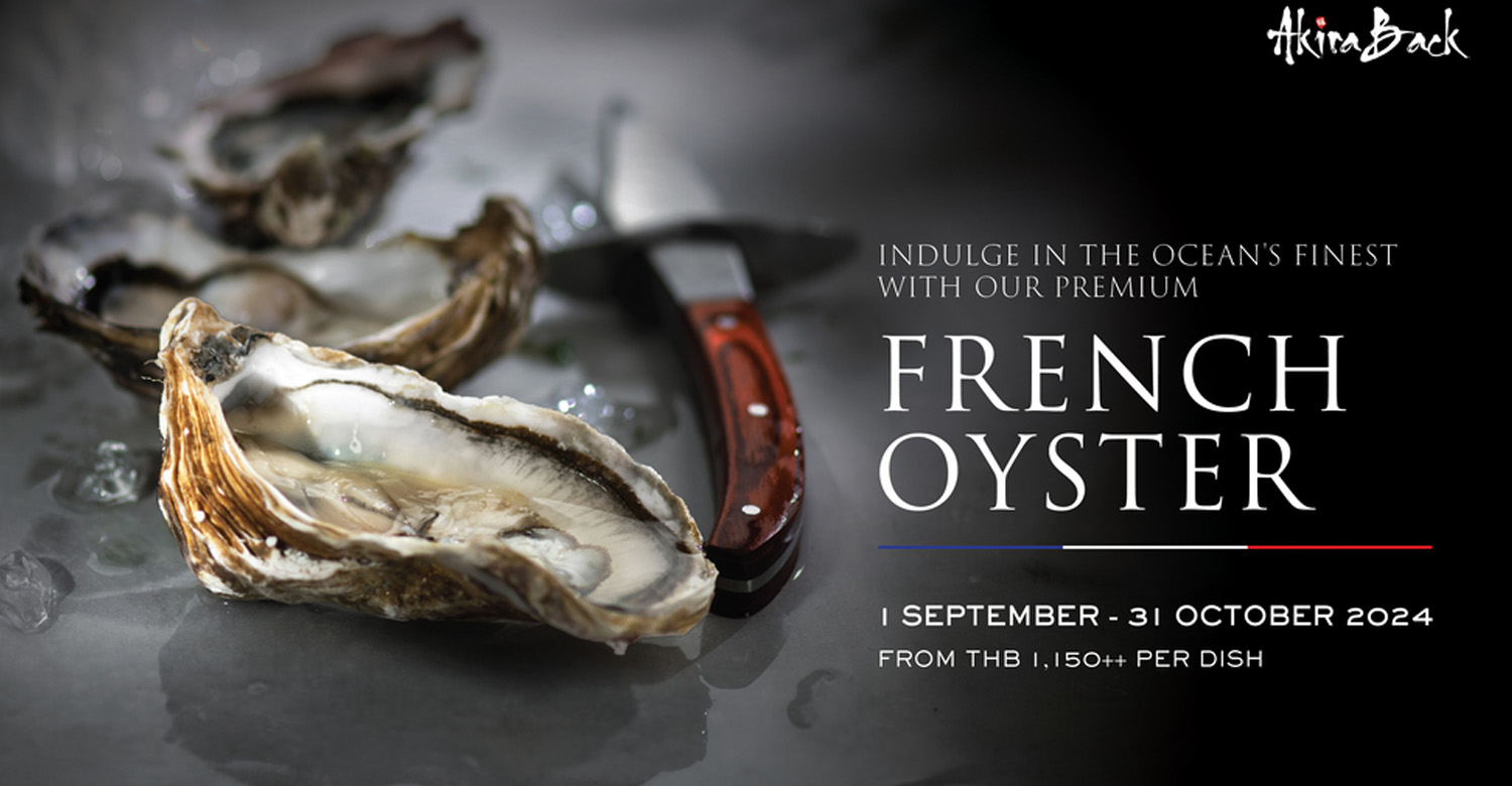 อย่าพลาดโอกาสลิ้มลองหอยนางรมฝรั่งเศสรสเลิศที่ ห้องอาหาร อาคีรา แบค เมนูพิเศษนี้ให้บริการทุกวัน: วันอาทิตย์ – วันพฤหัสบดี เวลา 17.30 – 23.00 น. และวันศุกร์ – เสาร์ เวลา 17.30 – 24.00 น .ตั้งแต่วันที่ 1 กันยายน – 31 ตุลาคม 2567
