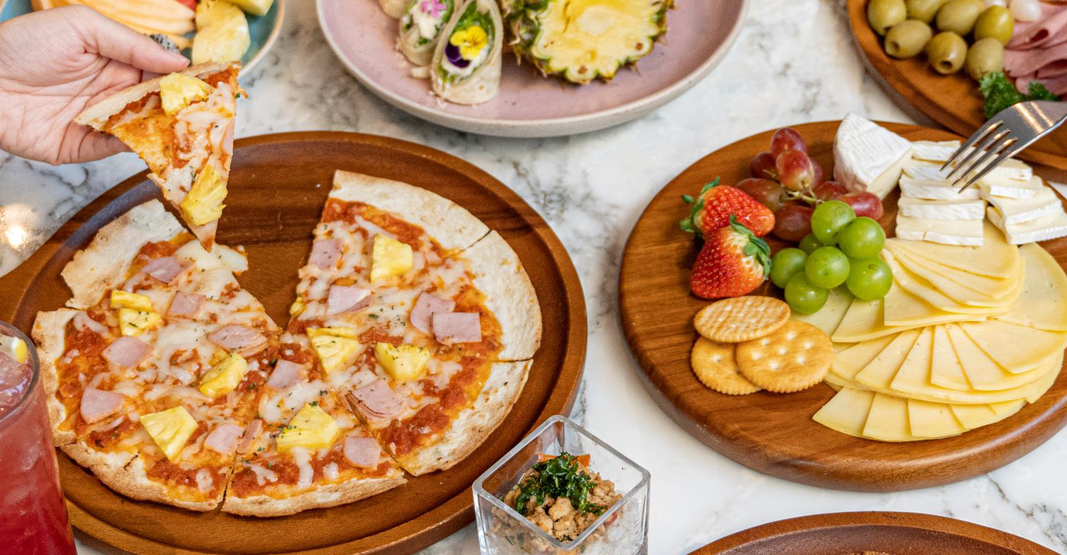 ในส่วนของเมนูอาหารแสนอร่อย คุณจะได้ลิ้มลองคานาเป้นานาชาติอย่าง ไก่ซีซาร์โรล (ไก่ย่างห่อด้วยแผ่นแป้งตอร์ติญ่า ผักคอส พาร์เมซาน และน้ำสลัดซีซาร์) ไมตี้โม เบอเกอร์ (มินิเบอร์เกอร์เนื้อวากิวไทย เชดด้าชีส ผักกาดหอม ผักชีฝรั่ง และซอสไมตี้โม) รวมไปถึงชีสพรีเมียม ชาร์คูเทอรี และพิซซ่าแสนอร่อย (ซีฟู้ดและฮาวายเอี้ยน)