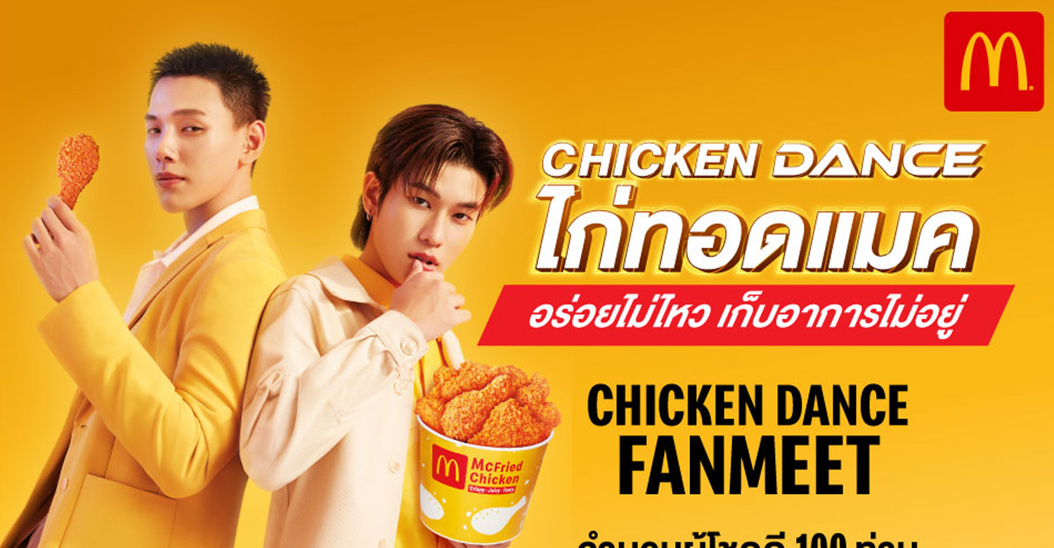 บริษัท แมคไทย จำกัด ผู้นำธุรกิจร้านอาหารบริการด่วน (QSR) ภายใต้แบรนด์ แมคโดนัลด์ ประเทศไทย ชวน ‘ต้าห์อู๋ x ออฟโรด’ แฟนไก่ทอดแมคตัวจริง และชาวแฟนด้อมมาแดนซ์ปลดปล่อยความอร่อยกับชุด ‘Chicken Dance’ ไก่ทอดแมค อร่อยไม่ไหว เก็บอาการไม่อยู่ พร้อมรับสิทธิพิเศษ 2 ต่อ เฉพาะสมาชิก My McDonald’s App