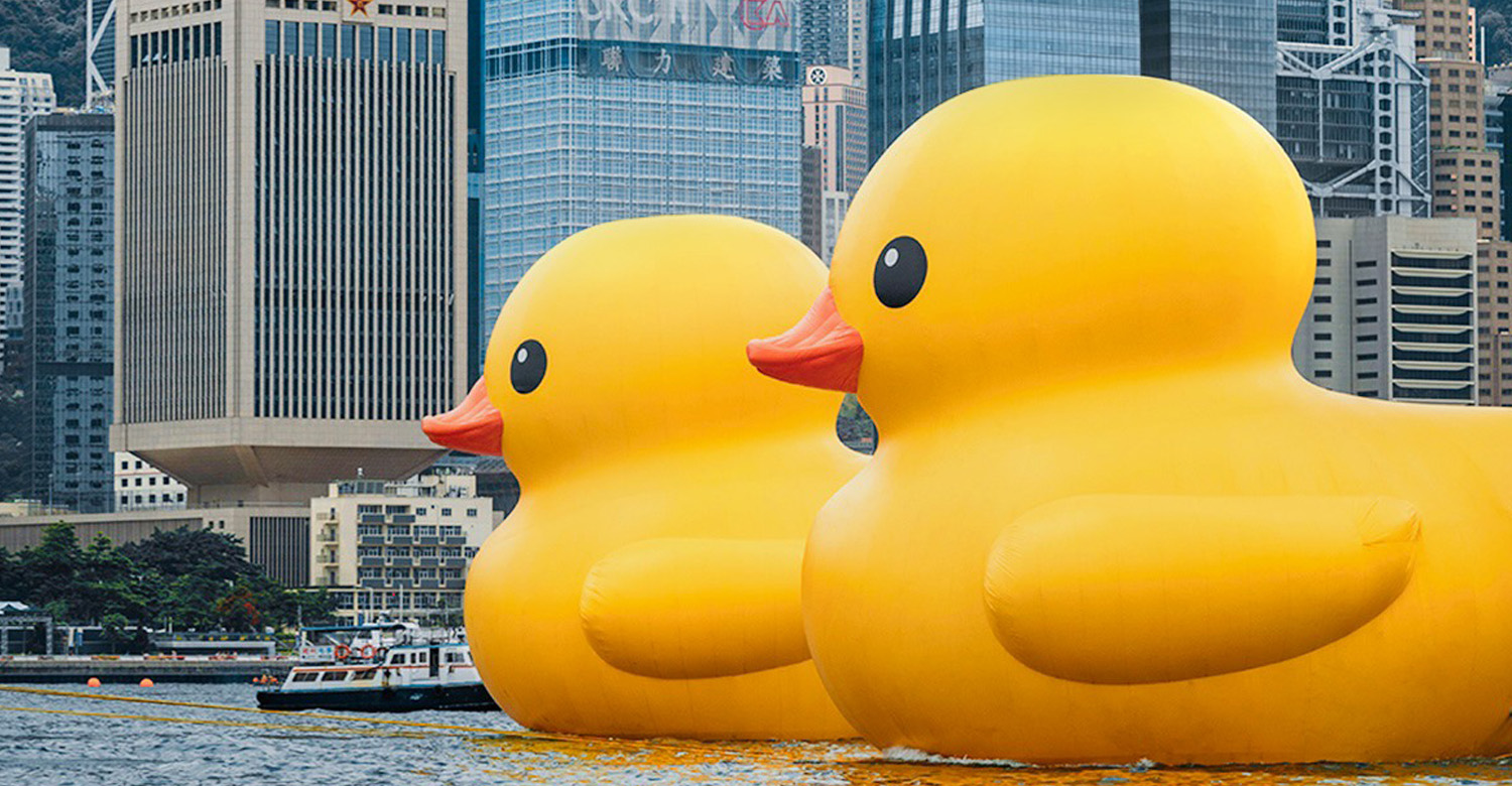 ย้อนกลับไปเมื่อ 10 ปีที่แล้ว งานศิลปะจัดวางสุดแหวกแนว เป็ดเหลืองยักษ์ (Rubber Duck) โดยศิลปินชาวดัตช์ Florentijn Hofmanแห่งครีเอทีฟสตูดิโอ AllRightsReserved (ARR) ได้เปิดตัวสู่สาธารณชนเป็นครั้งแรก ในฐานะสัญลักษณ์ของความสุขที่ตั้งเด่นตระหง่านตัดกับเส้นขอบฟ้า แถมยังเป็นเครื่องดึงดูดให้นักท่องเที่ยวจำนวนมากมาเยือนอ่าววิคตอเรียในฮ่องกงด้วย และในวันนี้เจ้าเป็ดเหลืองยักษ์ที่มีความสูงถึง 18 เมตร ก็ได้กลับมาเยือนฮ่องกงอีกครั้งพร้อมเพื่อนอีกหนึ่งตัว เพื่อส่งมอบความหมายสุดพิเศษพร้อมความสุขให้กับชาวเมืองแบบคูณสองด้วยผลงาน “DOUBLE DUCKS” โดยจะมีการจัดแสดงตั้งแต่วันที่ 10 มิถุนายน 2566 เป็นต้นไป เป็นเวลาสองสัปดาห์(ขึ้นอยู่กับสภาพอากาศในแต่ละวัน)ร่วมด้วยกิจกรรมอื่นๆ มากมายทั้งบนฟ้า บนบก และในน้ำ เพื่อมอบความสุข และความสดใสให้กับผู้คนทั่วทั้งเกาะฮ่องกง