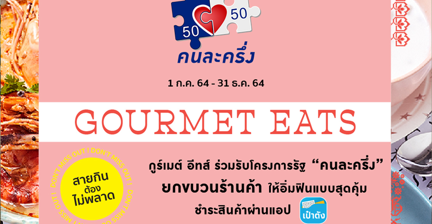 กูร์เมต์ อีทส์ โดย เดอะมอลล์ กรุ๊ป ร่วมเป็นส่วนหนึ่งในการกระตุ้นการจับจ่ายใช้สอยภายในประเทศ และช่วยแบ่งเบาภาระค่าใช้จ่ายให้กับประชาชน ขานรับนโยบายภาครัฐเข้าร่วมโครงการ“คนละครึ่ง” จับมือพันธมิตรผู้ประกอบการร้านอาหารและเครื่องดื่มชื่อดังกว่า 50 ร้าน อาทิ ธีรชัยไก่ย่าง,ราชาซาลาเปา, หยกสด, Eat Me, Tomoko, กล้วยทอดพันล้าน, ขนมจีบต้มโกหยี, ขนมเบื้องคุณดาว,แดงแหนมเนือง, อนุชาติ่มซำ, kokoro, Bear bear bear, ขนมจีบต้มโกนา, ขนมโตเกียวสายสุวรรณ, ขนมเปี๊ยะเฮียบหลี, Pasta Kitchen, วุ้นคุณอุ๊, หมูยอ ป.อุบล, Bow Cake, Crepes A day, Mikazuki, Takokki, Tokyo Sweets, กล้วยทอดโบราณ, น้ำพริกร้อยครก, บูมโดนัท, ปลาหมึกย่างแดนมังกรเยาวราช, มะลิกระหรี่ปั๊ป, Captain Squid, Health Center, Orangee, Photo cake, Sansook, with you, กุยช่ายแป้งสดตลาดพลู,ข้าวเกรียบปากหม้อ, คินมารุ, ดีพร้อม, ตั้งตัวลูกชิ้นเทวดา, เตยหอม, น้ำเต้าหู้สูตรคุณพ่อ(น้ำเต้าหู้5สี), แป้งจี่, ฟ้าประทาน, ลูกชิ้นโกฮับ, สุราษฎร์ซีฟู้ด, April’s bakery, Sweet heaven, ฟู้ดสลัดเมืองย่า, แม่แก้วทอง และสมพรสมุนไพร ฯลฯ