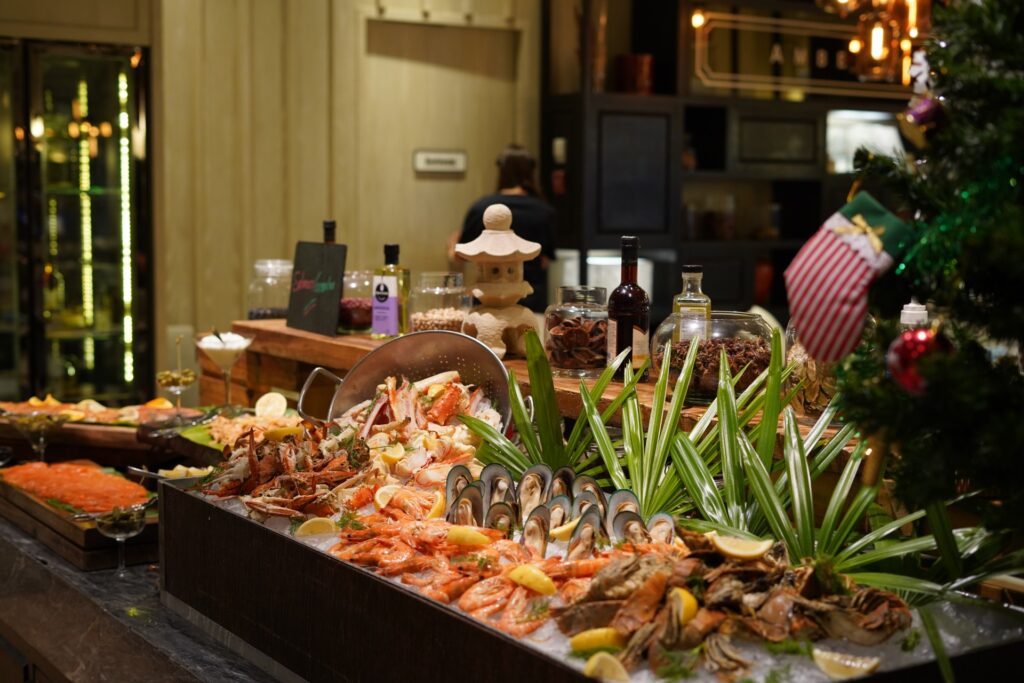 แต่ละมื้อทางรีสอร์ทนำเสนออาหารยอดนิยมหลากหลายรายการสำหรับการฉลองวันพิเศษ เช่น ไก่งวงอบ เนื้อวากิวออสเตรเลีย เนื้อแบล็คแองกัส ซีฟู้ดออนไอซ์ และเมนูอื่น ๆ อีกมากมาย เติมเต็มบรรยากาศแห่งความสุขด้วยดนตรีสด การร้องเพลงประสานเสียง และการมาเยือนของซานตาคลอส รวมถึงกิจกรรมสำหรับเด็ก พร้อมรับกลูห์ไวน์ต้อนรับท่านละ 1 แก้ว และยังมีแพ็กเกจเครื่องดื่มแบบ ไม่อั้นให้เลือกเพื่อเพิ่มสีสันแห่งความสุขสันต์ตลอดค่ำคืน
