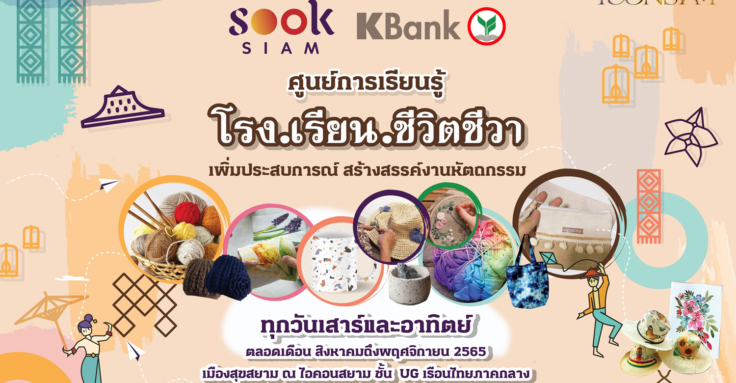 เมืองสุขสยาม และไอคอนสยาม ร่วมกับ ธนาคารกสิกรไทย ร่วมสร้างความสุขผ่าน “โรง.เรียน.ชีวิตชีวา” กับกิจกรรมการเรียนรู้ “เพลินกับงานคราฟต์” ที่รวบรวมงานหัตถกรรมแขนงต่าง ๆ ยกมาไว้ด้วยกันมากมาย เพื่อให้เหล่าคนรักศิลปะได้เพลิดเพลินกับผลงานและเข้าถึงความสุขทั้งทางด้านร่างกายและจิตใจ โดยงานจัดขึ้นตั้งแต่วันนี้ ถึง 6 พฤศจิกายน 2565 (เฉพาะวันเสาร์ และวันอาทิตย์) ณ เรือนไทยภาคกลาง เมืองสุขสยาม ชั้น G ไอคอนสยาม