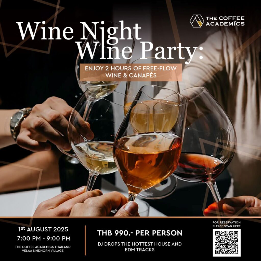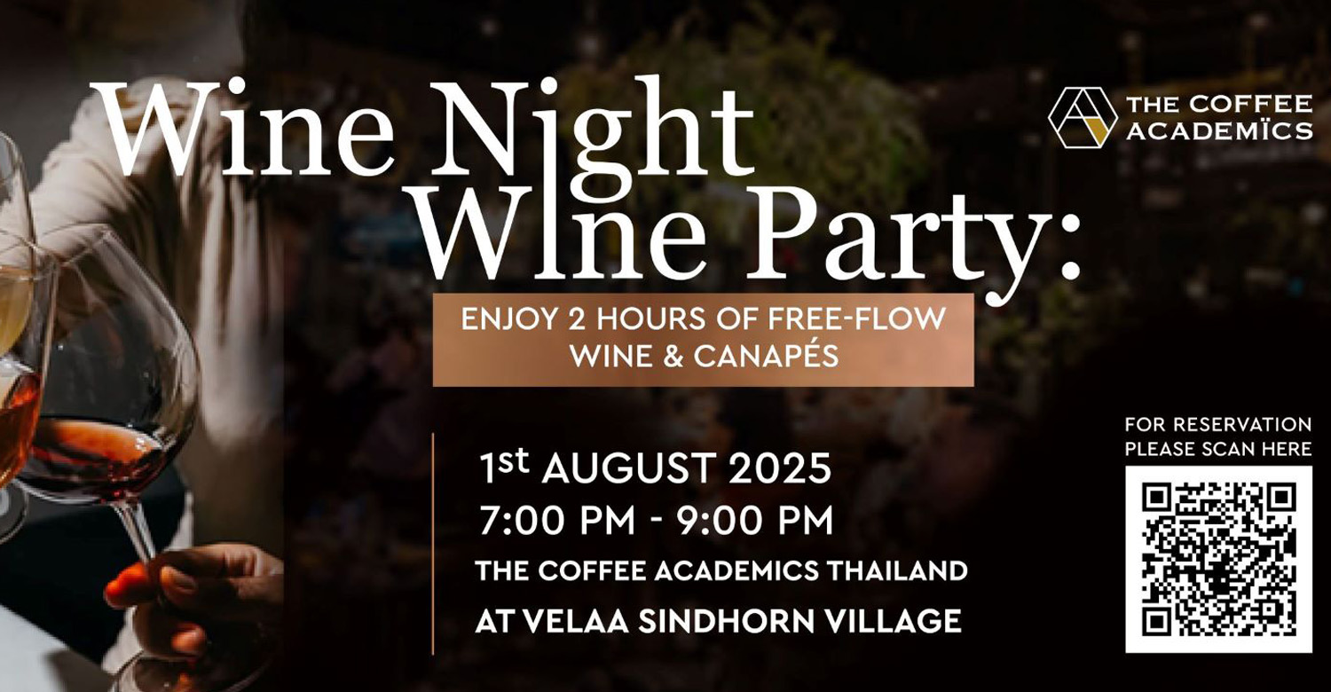 เริ่มที่ “เดอะ คอฟฟี่ อะคาเดมิคส์” คาเฟ่ระดับพรีเมียมที่มีต้นกำเนิดจากฮ่องกง และขยายความนิยมมาสู่ประเทศไทย ด้วยแนวคิดที่ผสมผสานวัฒนธรรมการดื่มกาแฟกับไลฟ์สไตล์ร่วมสมัย ขอเชิญผู้ที่ชื่นชอบไวน์และเสียงดนตรี เข้าร่วมงาน “Wine Night Wine Party – Get Ready to Groove!” ซึ่งจะจัดขึ้นในวันศุกร์ที่ 1 สิงหาคม 2568 เวลา 19.00 – 21.00 น. ณ สาขา โครงการเวลา หลังสวน (สินธร วิลเลจ) ภายในงาน ผู้เข้าร่วมจะได้เพลิดเพลินกับไวน์ชั้นดีและคานาเป้รสเลิศ เสิร์ฟไม่จำกัด ตลอด 2 ชั่วโมง พร้อมรับเครื่องดื่มต้อนรับ “Special Sangria” ไวน์โรเซ่จากสเปน และสนุกสนานไปกับเสียงเพลงจากดีเจสดในแนว House และ EDM ที่จะมาเติมเต็มบรรยากาศให้เต็มไปด้วยพลังและความสนุกอย่างมีสไตล์