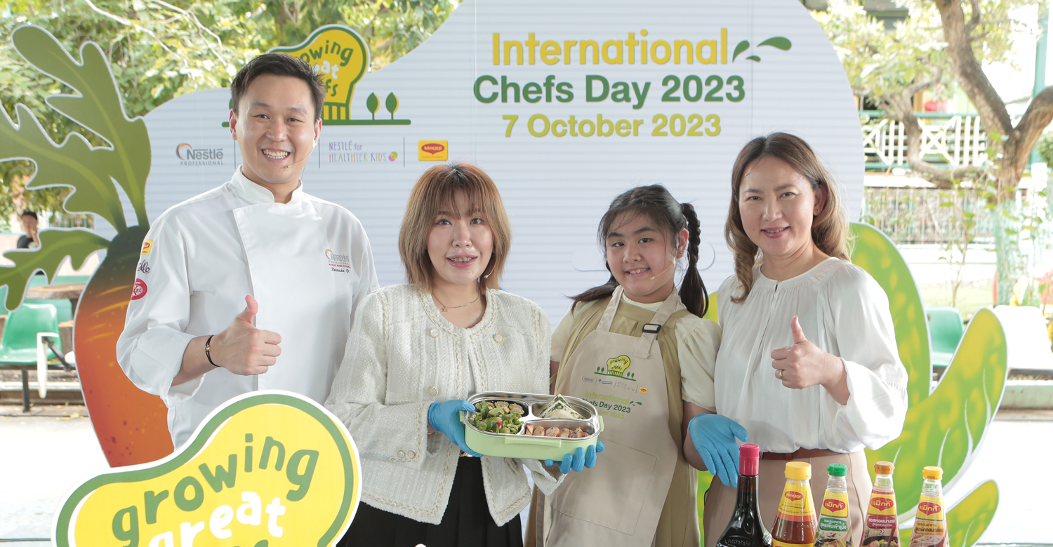เนสท์เล่ โพรเฟชชันนัล ร่วมฉลอง วันเชฟสากล หรือ International Chefs Day 2023 ผ่านกิจกรรมเชฟชุมชนตัวน้อย จัดเวิร์กชอปเสริมทักษะการทำอาหารให้เด็กๆ ร่วมสร้างสรรค์เมนูแสนอร่อยด้วยผลิตภัณฑ์แม็กกี้ และได้ประโยชน์จากพืชผักสวนครัวแบบจัดเต็ม ภายใต้ธีม “Growing Great Chefs” โดยมีเชฟและนักโภชนาการผู้เชี่ยวชาญจากเนสท์เล่ ร่วมส่งต่อความรู้ สร้างความเข้าใจที่ถูกต้องให้แก่เยาวชนไทย ไม่ว่าจะเป็นในเรื่องทักษะการทำอาหาร การเลือกวัตถุดิบที่เหมาะสมตามหลักโภชนาการ และการเลือกรับประทานอาหารที่ดีต่อสุขภาพ พร้อมมุ่งยกระดับวัตถุดิบในท้องถิ่น ด้วยการนำพืชผักสวนครัวในชุมชนมาเป็นส่วนประกอบหลักในการรังสรรค์เมนูที่หลากหลาย ผ่านความร่วมมือกับโรงเรียนศรีบางไทร จังหวัดพระนครศรีอยุธยา ซึ่งเป็นโรงเรียนต้นแบบในการส่งเสริมโภชนาการเด็กวัยเรียนในวิถีใหม่ (Healthy New Normal)