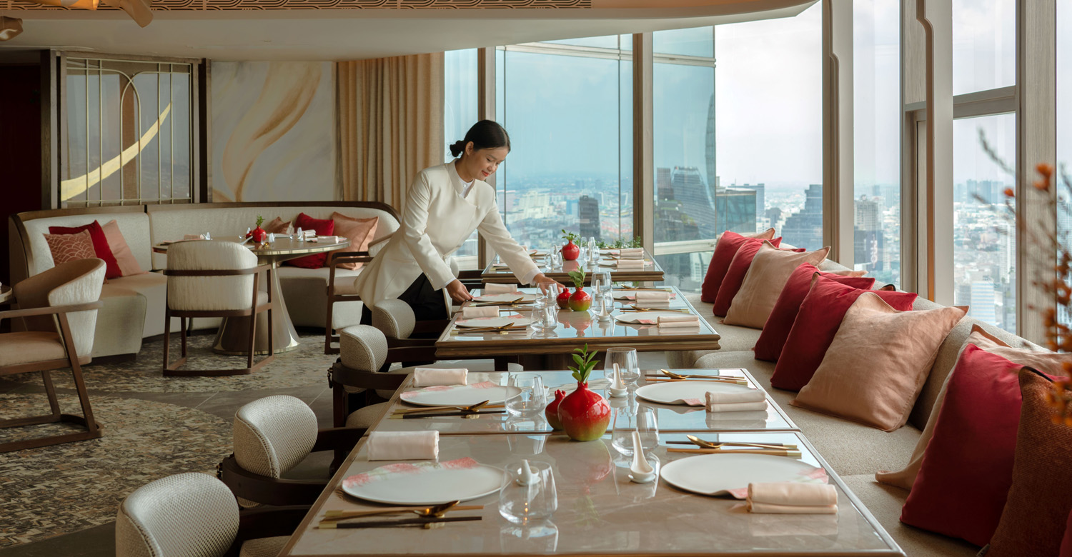 ค่ำคืนวันเสาร์ที่ 23 สิงหาคม 2568 ผู้ร่วมงานจะได้ลิ้มลองเซ็ตเมนู 7 คอร์สสุดประณีต ที่นำเสนออาหารจีนสไตล์กวางตุ้งและแต้จิ๋วในแบบร่วมสมัยโดยชฟวิคกี้ เชง จับคู่กับไวน์วินเทจระดับพรีเมียมจาก Penfolds พร้อมวิวเมืองกรุงเทพฯ สุดตระการตา