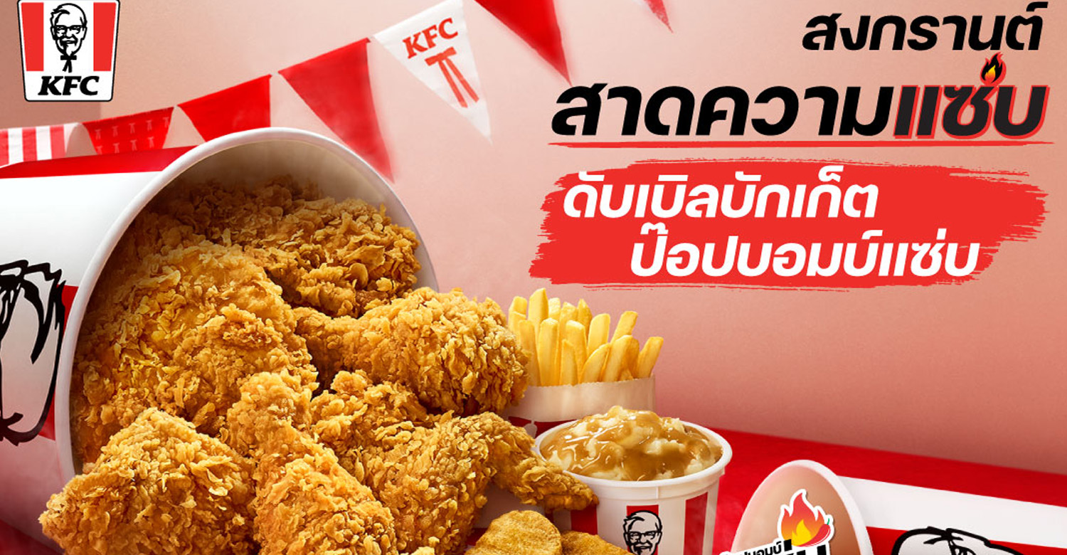 งานนี้ใครอยากแซ่บก็พุ่งตัวไปได้ที่ KFC ทุกสาขา ประเดิมความแซ่บแบบอิ่มพอดีด้วยชุด เดอะบอกซ์ ป๊อปบอมบ์แซ่บ ไก่ทอด 1 ชิ้น ไก่ป๊อปบอมบ์แซ่บ 7 ชิ้น ไก่วิงซ์แซ่บ 2 ชิ้น เฟรนช์ฟรายส์ (ปกติ) 1 ที่ และเป๊ปซี่ 1 ที่ ในราคาชุดละ 159 บาท สำหรับคนอยากแซ่บแบบจุใจ แนะนำให้เปิดตี้รับสงกรานต์ด้วยชุด ดับเบิลบักเก็ต ป๊อปบอมบ์แซ่บ อร่อยจัดเต็มกับ ไก่ทอด 7 ชิ้น ไก่ป๊อปบอมบ์แซ่บ 14 ชิ้น ไก่วิงซ์แซ่บ 3 ชิ้น นักเก็ตส์ 3 ชิ้น เฟรนซ์ฟรายส์ (ปกติ) 1 ที่ และมันบด (ปกติ) 1 ที่ ในราคาชุดละ 399 บาท ตั้งแต่วันที่ 27 มีนาคม 2568 – 23 เมษายน 2568 (หรือจนกว่าสินค้าจะหมด!)