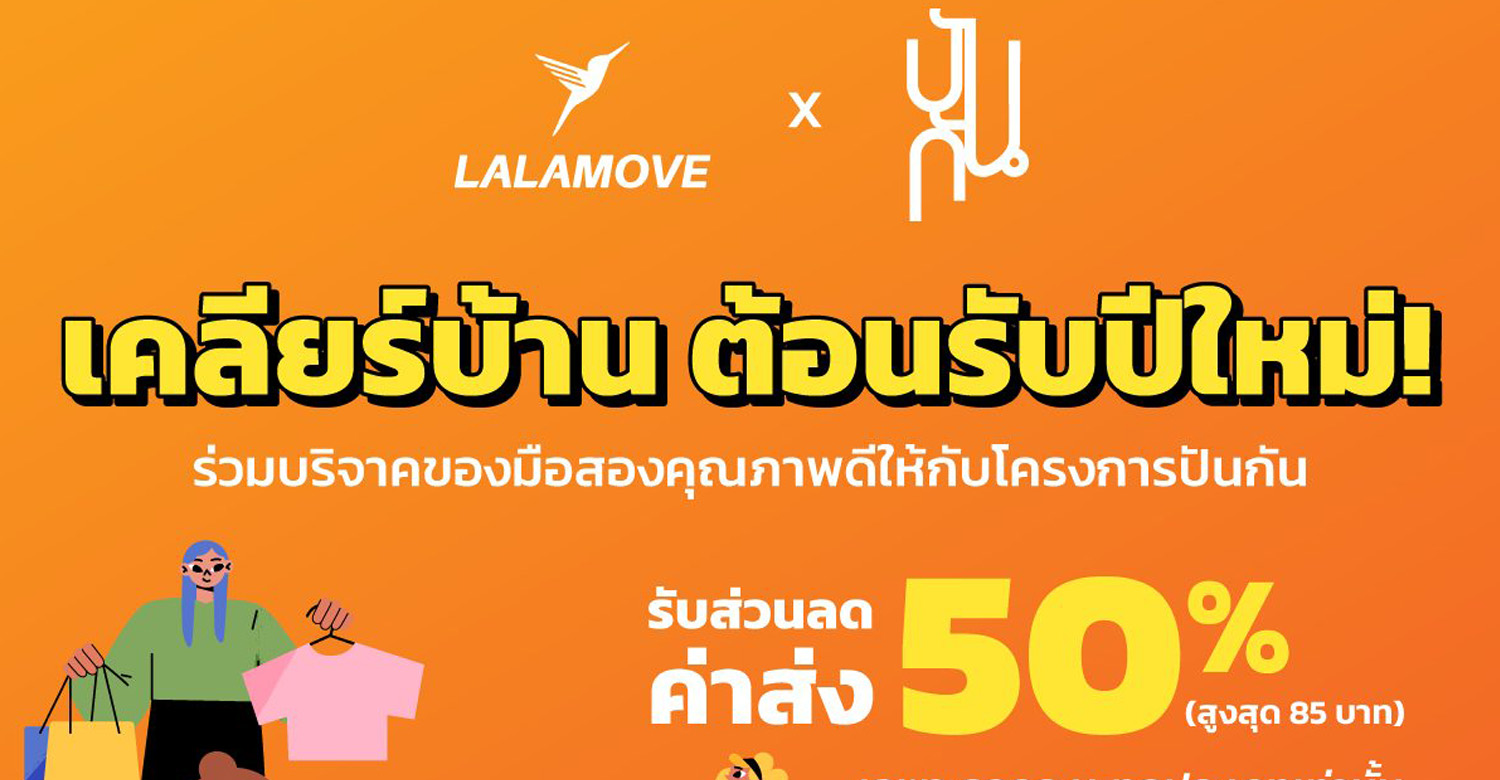 แคมเปญ “เคลียร์บ้าน ต้อนรับปีใหม่” โดยลาลามูฟและโครงการร้านปันกัน สนับสนุนสังคมแห่งการแบ่งปันด้วยโค้ดส่วนลดลาลามูฟ LALAPANKAN สำหรับรถยนต์และรถกระบะทุกประเภท ลด 50% (สูงสุด 85 บาท) ทุกรายการที่มีปลายทาง ณ คลังสินค้าแบ่งปัน โครงการร้านปันกัน โดย มูลนิธิยุวพัฒน์ เลขที่ 7 ซอยอ่อนนุช 90 แขวงประเวศ เขตประเวศ กรุงเทพฯ 10250 ตั้งแต่วันนี้ถึง31 พฤษภาคม2567 สามารถส่งของบริจาคได้ทุกวันระหว่างเวลา 8.00 – 17.00น.