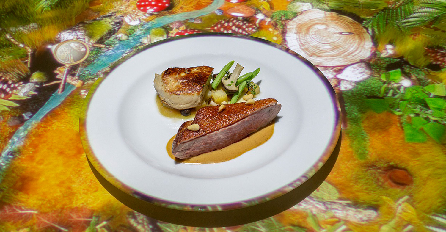 อาหารจานหลักสุดหรู ได้แก่ กุ้งล็อบสเตอร์บอสตันครึ่งตัวกับซอสมอร์เน ตามด้วยไอศกรีมเชอร์เบทมะม่วงเสิร์ฟพร้อมโฟมกะทิ ถั่วลิสง และซอสขิงช็อคโกแลต และอกเป็ดอบ เสิร์ฟพร้อมฟัวกราส์ มันฝรั่งอบ เมล็ดสน และซอสมัสมั่น ปิดท้ายมื้อพิเศษด้วยของหวาน พุดดิ้งข้าวกับเครื่องเทศ เสิร์ฟพร้อมไอศกรีมเชอร์เบทส้มแมนดาริน และชาหรือกาแฟ