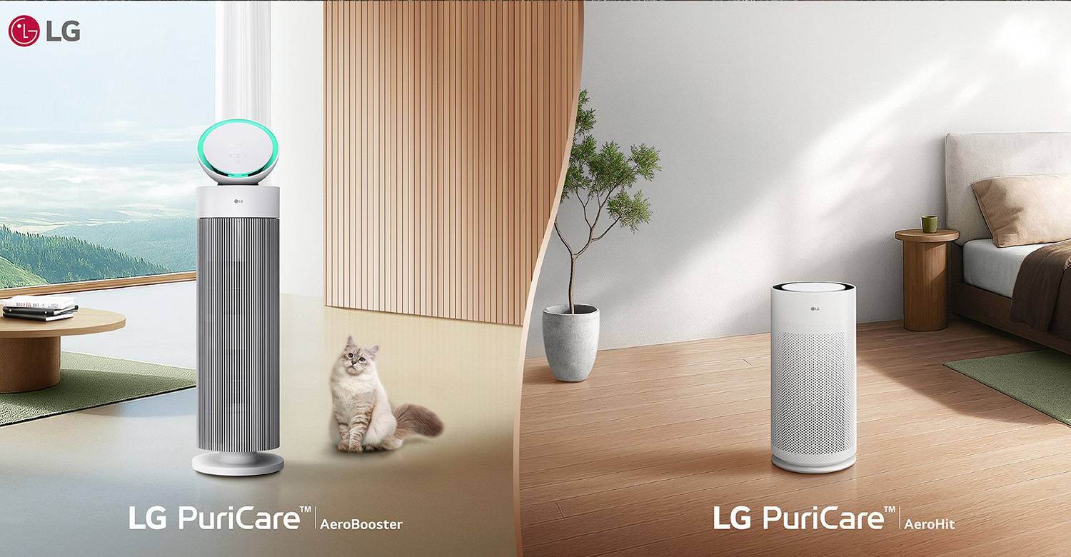 บริษัท แอลจี อีเลคทรอนิคส์ (ประเทศไทย) จำกัด ผู้นำด้านนวัตกรรมระดับโลกด้านเทคโนโลยีและเครื่องใช้ไฟฟ้า ขานรับเทรนด์ผู้บริโภคที่ใส่ใจดูแลสุขภาพซึ่งรวมถึงการมองหาอากาศสะอาดในชีวิตประจำวัน ตอบสนองความต้องการเครื่องฟอกอากาศในตลาดที่ยังคงเติบโตอย่างต่อเนื่อง เปิดตัวเครื่องฟอกอากาศสองรุ่นใหม่ LG PuriCare™ AeroBooster และ LG PuriCare™ AeroHit มีจุดเด่นที่ดีไซน์ขนาดกะทัดรัด เรียบง่าย เหมาะกับการจัดวางในพื้นที่ใช้สอยจำกัด แต่อัดแน่นไปด้วยฟังก์ชั่นการใช้งานครบครัน