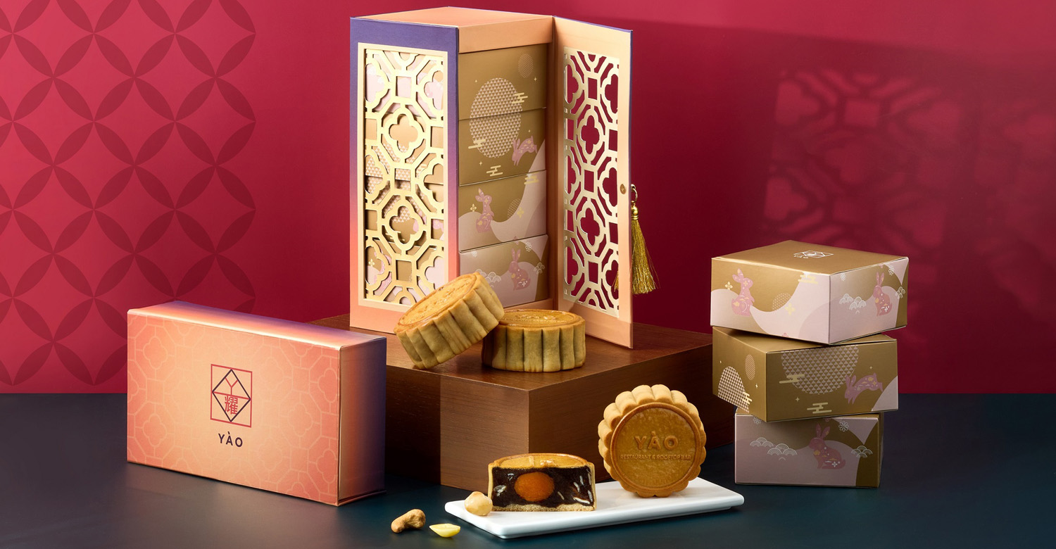 • เซตเย่า มูนเค้ก (Yào Mooncake Box) : เซต 2 ชิ้น บรรจุมาในกล่องแบน สีสดใสที่สื่อถึงดวงจันทร์สีสดบนท้องฟ้าอันมืดมิด ราคา 599 บาทสุทธิต่อเซต