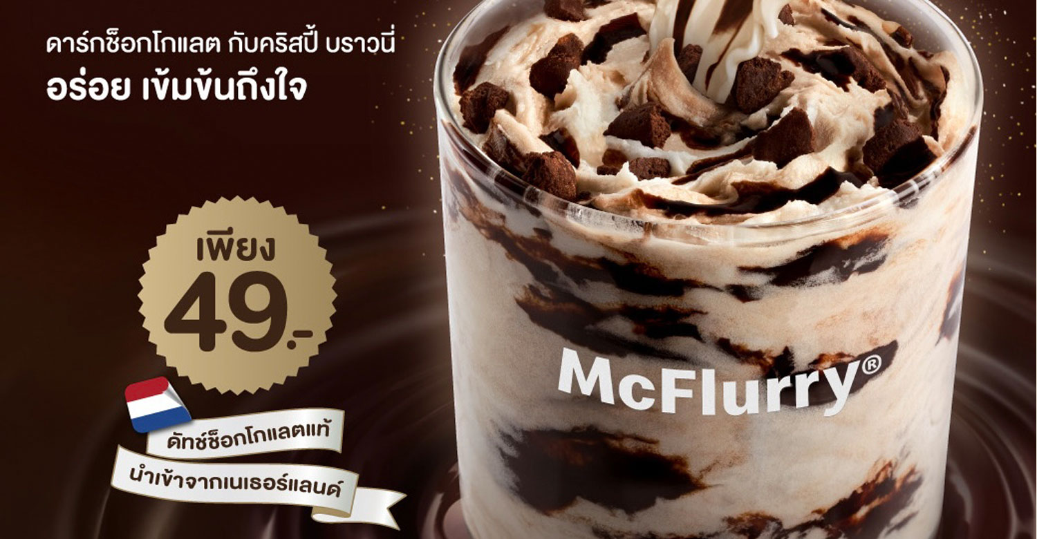 แมคโดนัลด์ ส่ง 2 เมนูเด็ดสุดอร่อย ‘แมคเฟลอร์รี รอยัล ช็อกโกแลต บราวนี่’ เมนูใหม่สายดาร์กช็อกโกแลต มาพร้อมกับคริสปี้ บราวนี่ เต็มๆ คำ อร่อย เข้มข้นถึงใจแบบพรีเมียม ด้วยไอศกรีมซอฟท์เสิร์ฟหวานละมุนที่ปั่นเข้ากับดัทช์ช็อกโกแลตแท้จากเนเธอร์แลนด์ เพียงถ้วยละ 49 บาท