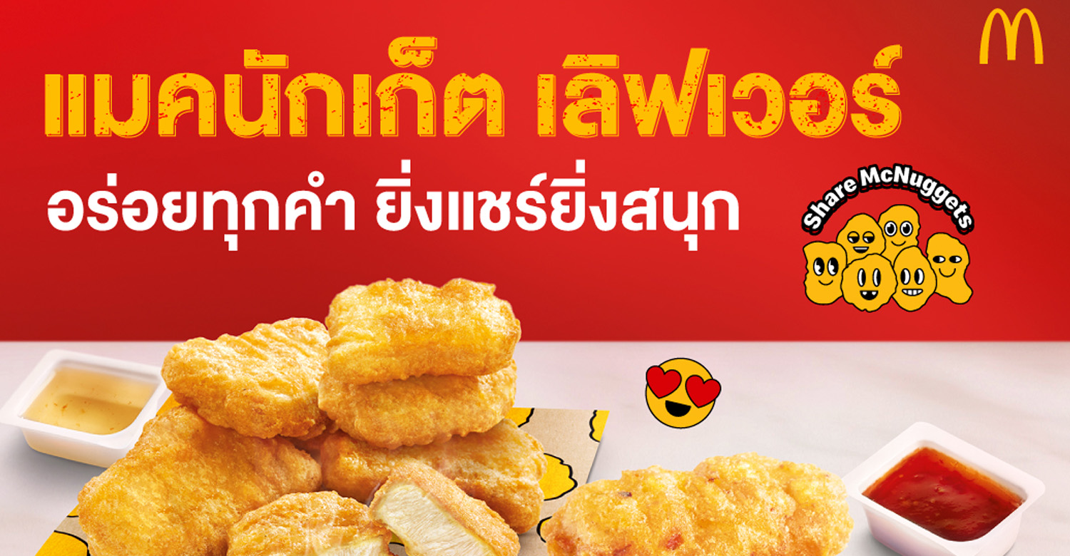 มาอร่อยทุกคำ ยิ่งแชร์ยิ่งสนุกกับแมคนักเก็ตราคาพิเศษสุดคุ้มได้แล้ว ตั้งแต่วันนี้ถึง 14 พฤศจิกายน 2566 ที่ร้านแมคโดนัลด์ทุกสาขาที่ร่วมรายการ, บริการ ไดร์ฟ ทรู (Drive Thru) และแมคดิลิเวอรีทั้ง 3 ช่องทาง โทร.1711, เว็บไซต์ www.mcdonalds.co.th และแอปพลิเคชันของแมคโดนัลด์  ดูรายละเอียดเพิ่มเติมได้ที่ Facebook.com/McThai