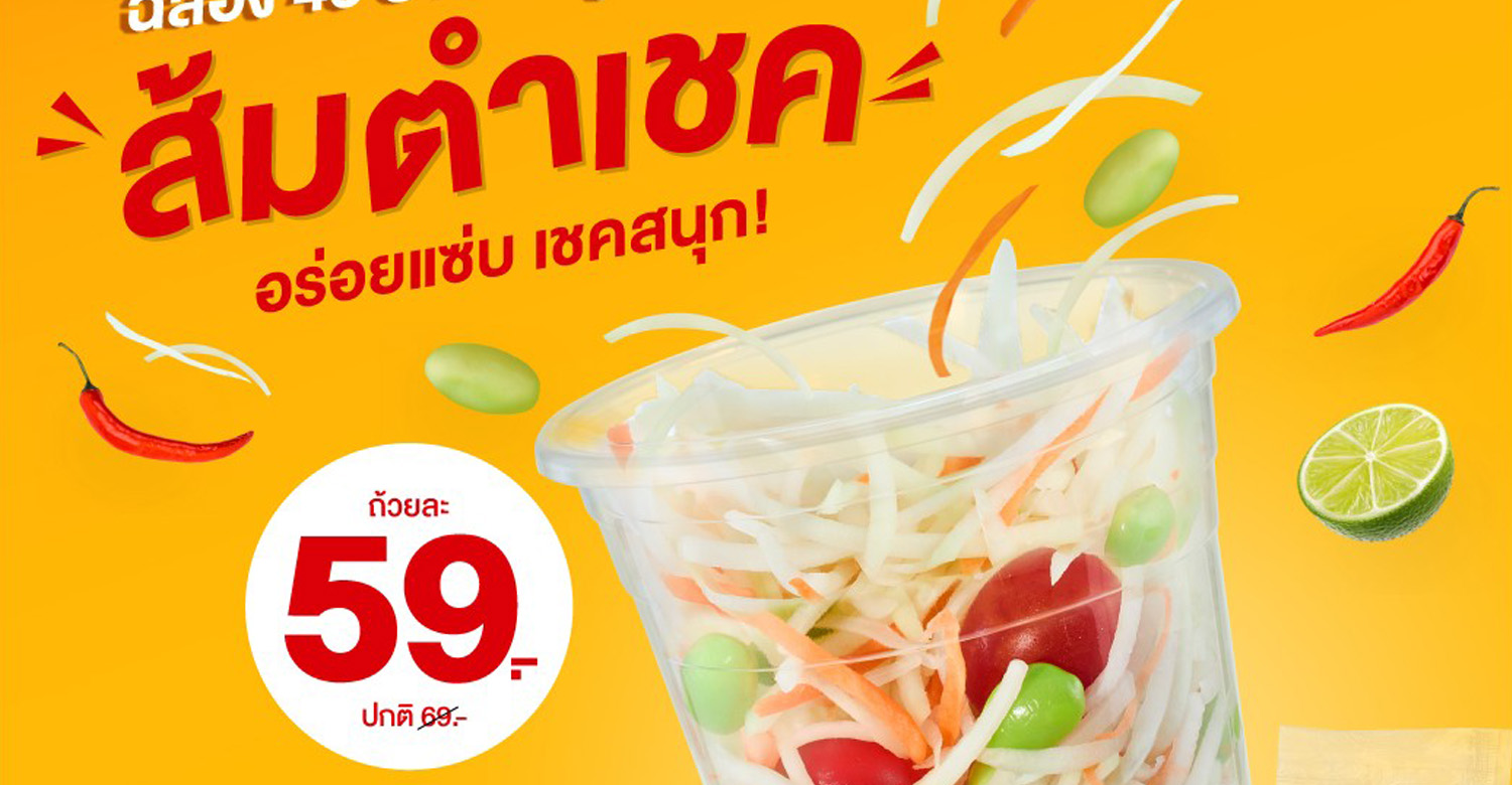 แมคโดนัลด์ เสิร์ฟเมนูในตำนานที่ทุกคนคิดถึง! ฉลองครบรอบ 40 ปี กับ ‘ส้มตำเชค’ ส้มตำไทยสุดอร่อย ชวนให้เชคสนุกถึงรสง่ายๆ เพียงแค่ฉีกซอง เทซอสน้ำส้มตำสุดแซ่บ แล้วเชคๆ ให้คลุกเคล้ากับส่วนผสมทั้งมะละกอ, แครอท, มะเขือเทศ และถั่วแระญี่ปุ่น ในราคาเริ่มต้นเพียงถ้วยละ 59 บาท และอร่อยถึงใจ กับเมนูคู่หูชวนแซ่บ ‘ชุดไก่ทอดส้มตำเชค’ อร่อยกับไก่ทอดแมค กรอบ ชุ่มฉ่ำ พร้อมส้มตำเชคสุดแซ่บ (ไก่ทอดแมค 1 ชิ้น, ส้มตำเชค 1 ถ้วย และโค้ก 12 ออนซ์ 1 แก้ว) ราคาเริ่มต้นชุดละ 109 บาท เท่านั้น