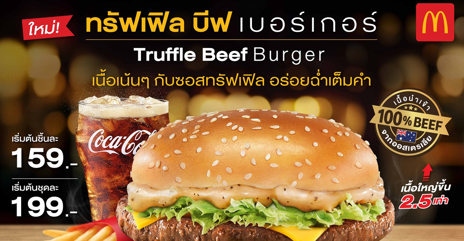 แมคโดนัลด์ ส่ง 2 เมนูเด็ด โดนใจคนรักแมคโดนัลด์ เริ่มด้วยความอร่อยที่คนรักเนื้อต้องไม่พลาด ‘ทรัฟเฟิล บีฟ เบอร์เกอร์’ เบอร์เกอร์เนื้อเน้นๆ อร่อยฉ่ำเต็มคำ จุใจด้วยเนื้อส่งตรงจากออสเตรเลียที่ชิ้นใหญ่ขึ้น 2.5 เท่า อร่อยเข้ากันลงตัวกับซอสทรัฟเฟิลมาโยสุดพรีเมี่ยม พร้อมกับผักกาดแก้วสดกรอบ ขนมปังนุ่มๆ ประกบด้วยเชดด้าชีสเยิ้มๆ ในราคาเริ่มต้นเพียงชิ้นละ 159 บาท หรือ เลือกอิ่มแบบครบชุด พร้อมเฟรนช์ฟรายส์ขนาดกลาง และโค้ก 16 ออนซ์ ในราคาเริ่มต้นเพียงชุดละ 199 บาท อีกหนึ่งเมนูฮิตที่กลับมาให้ฟินกันอีกครั้ง เคี้ยวเพลินจนห้ามใจไม่อยู่ ‘เคอร์ลี่ ฟรายส์’ มันฝรั่งรูปแบบเกลียว รสชาติอร่อยเข้มข้น กรอบนอก นุ่มใน ราคาเริ่มต้น 89 บาท หรือจะอัพเป็นขนาดปาร์ตี้ไซส์ จุใจ 2 เท่า ในราคาเริ่มต้นเพียง 159 บาท
