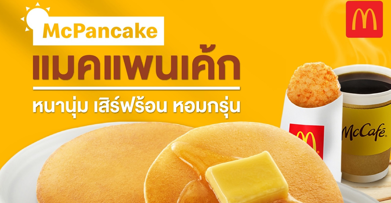 แวะมาเติมพลังก่อนเริ่มวันใหม่กับเมนูสุดฮิต ‘แมคแพนเค้ก’ หนานุ่ม เสิร์ฟร้อน หอมกรุ่น ได้แล้ว ตั้งแต่วันที่ 7 มิถุนายน – 31 สิงหาคม 2567 ที่ร้านแมคโดนัลด์ทุกสาขาที่ร่วมรายการ, บริการไดร์ฟ ทรู (Drive Thru) และแมคดิลิเวอรีทั้ง 3 ช่องทาง โทร.1711, เว็บไซต์ www.mcdonalds.co.th และแอปพลิเคชันของแมคโดนัลด์ หรือ ดูรายละเอียดเพิ่มเติมได้ที่ Facebook.com/McThai