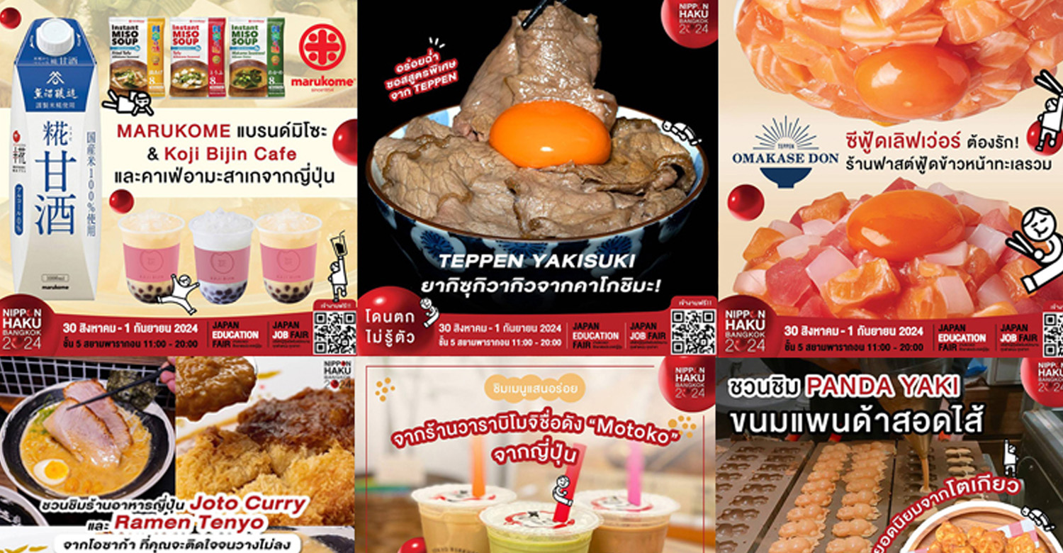 เจแปนเลิฟเวอร์ ที่หลงรักอาหาร ขนม หรือเครื่องดื่มสไตล์ญี่ปุ่นแท้ๆ เตรียมมา #โดนตกไม่รู้ตัว พร้อมตะลุยกินให้พุงกางกับ 40 ร้านดังจากญี่ปุ่นแท้ๆ แบบไม่ต้องบินไปถึงญี่ปุ่นกันเลย ในงาน NIPPON HAKU BANGKOK 2024 งานมหกรรมญี่ปุ่นที่ยิ่งใหญ่ที่สุดในประเทศไทย ซึ่งจัดขึ้นในวันที่ 30 สิงหาคม – 1 กันยายน 2567 ณ ชั้น 5 พารากอนฮอลล์