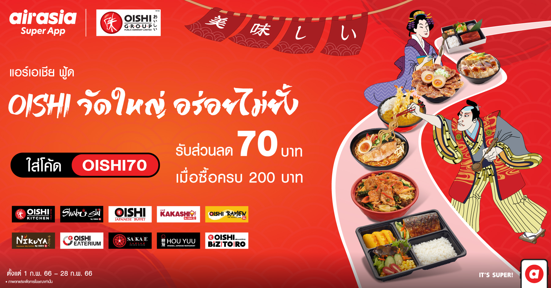 โออิชิ” จับมือ “แอร์เอเชีย ฟู้ด” เอาใจสายอาหารญี่ปุ่นจัดใหญ่ดีลส่วนลดพิเศษตลอดเดือนกุมภาพันธ์นี้