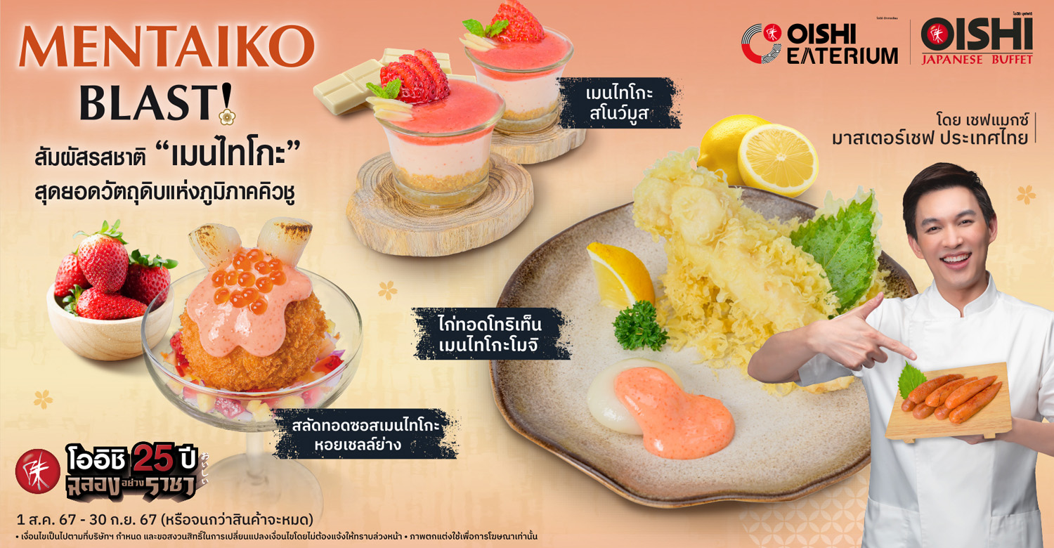 ภายใต้แคมเปญ โออิชิ 25 ปี ฉลองอย่างราชา โออิชิ อีทเทอเรียม และ โออิชิ บุฟเฟต์ ผนึกกำลัง มาสเตอร์เชฟ ประเทศไทย โค้งสุดท้าย กับ เชฟแมกซ์ – นันทวัฒน์ จรรยาลิขิต พร้อมสร้างสรรค์อาหารจานพิเศษ ชูวัตถุดิบชั้นยอด เมนไทโกะ แห่งภูมิภาคคิวชู โอ-ร่อย เต็มแมกซ์ !!! เริ่มแล้ววันนี้