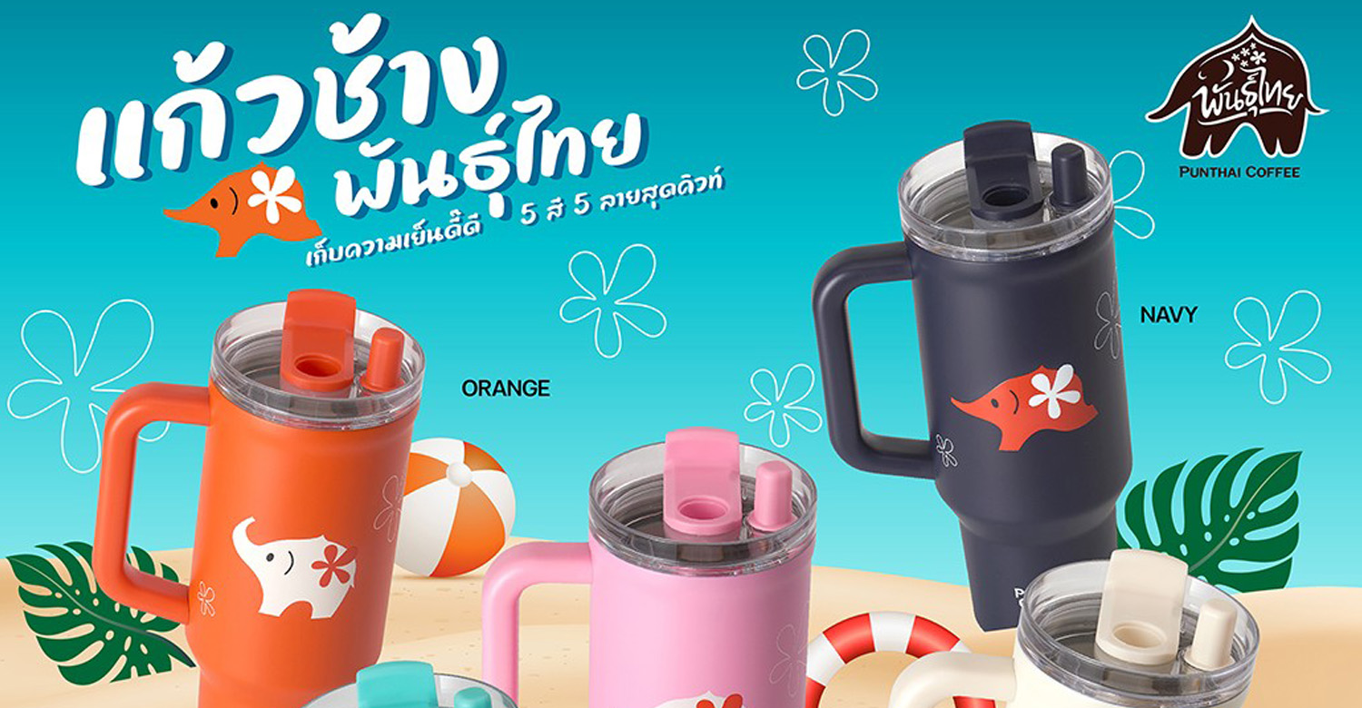 “แก้วช้างพันธุ์ไทย” คอลใหม่ ที่ใช้คำว่าน่ารักได้เปลืองมาก ผลิตจากวัสดุอย่างดี ดื่มได้อย่างปลอดภัย ไซส์ใหญ่จุใจ 900 มล. มี 5 แบบ 5 สีให้สะสม ทั้งสีเบจ สีส้ม สีน้ำเงิน สีชมพู และสีเขียวมินท์ มาพร้อมหลอดและที่เก็บแบบฝาเกลียว พกสะดวก เพียงใบละ 529 บาท พิเศษ! รับฟรี เครื่องดื่มร้อนหรือเย็น 1 แก้ว ราคาปกติสูงสุด 65 บาท เมื่อซื้อแก้วคอลเลคชันที่ร่วมรายการ มาช่วยกันลดโลกร้อน ลดการใช้พลาสติกได้ตั้งแต่วันที่ 9 พ.ค. 68 – 30 มิ.ย. 68 นี้ หรือจนกว่าสินค้าจะหมด ที่ร้านพันธุ์ไทยทุกสาขาที่ร่วมรายการทั่วประเทศ ยกเว้นสาขาท่าอากาศยาน เดลิเวอรีไม่ร่วมรายการ รายละเอียดเพิ่มเติมคลิก www.facebook.com/punthaicoffee หรือ www.punthaicoffee.com