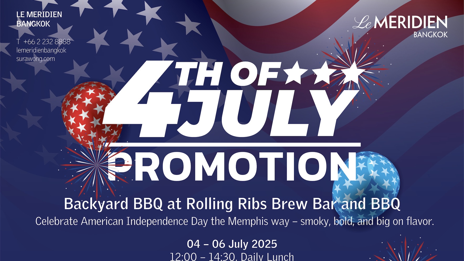 ห้องอาหาร โรลลิ่ง ริบส์ บรูว์ บาร์ แอนด์ บาร์บีคิว ขอเชิญร่วมเฉลิมฉลองวันชาติสหรัฐอเมริกา กับบาร์บีคิวรสเลิศ ในวันที่ 4 – 6 กรกฎาคม 2568 กับโปรโมชัน Backyard BBQ ที่นำเสนอบาร์บีคิวสไตล์ Southern American ที่ไม่เหมือนใคร